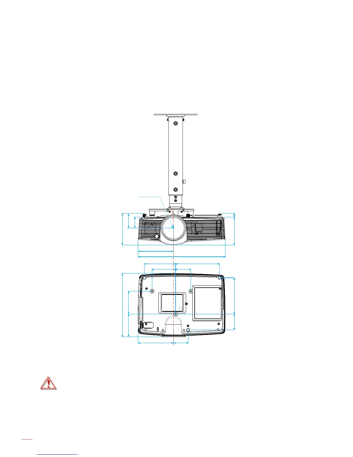 Be sure to keep at least 10 cm gap between the ceiling and the bottom of the projector.