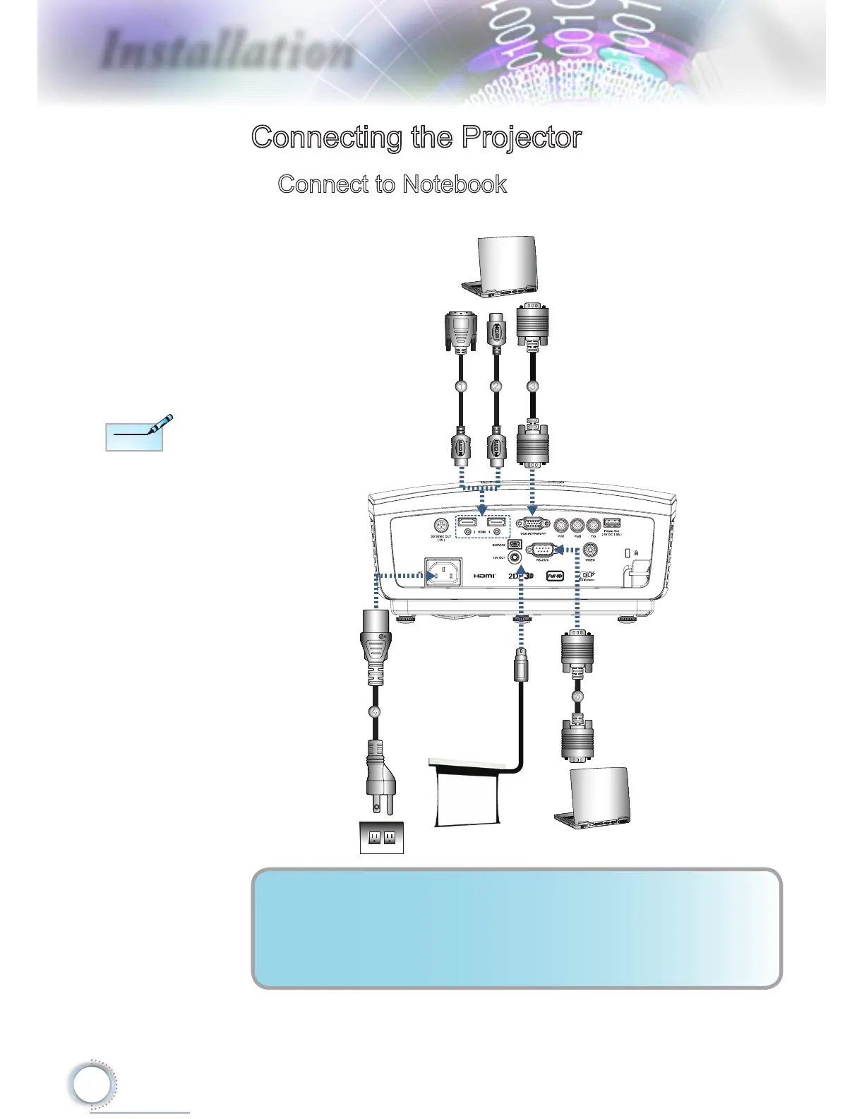 Optoma HD50 - Installation; Connecting the Projector