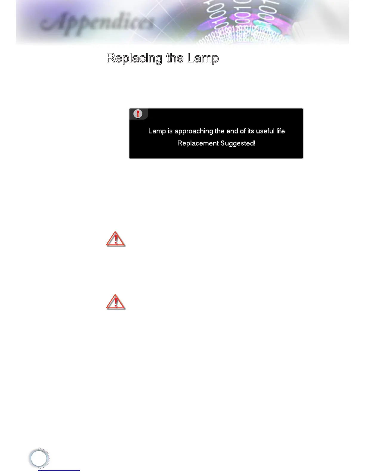 the lamp life is nearing the end of use, you will receive a
