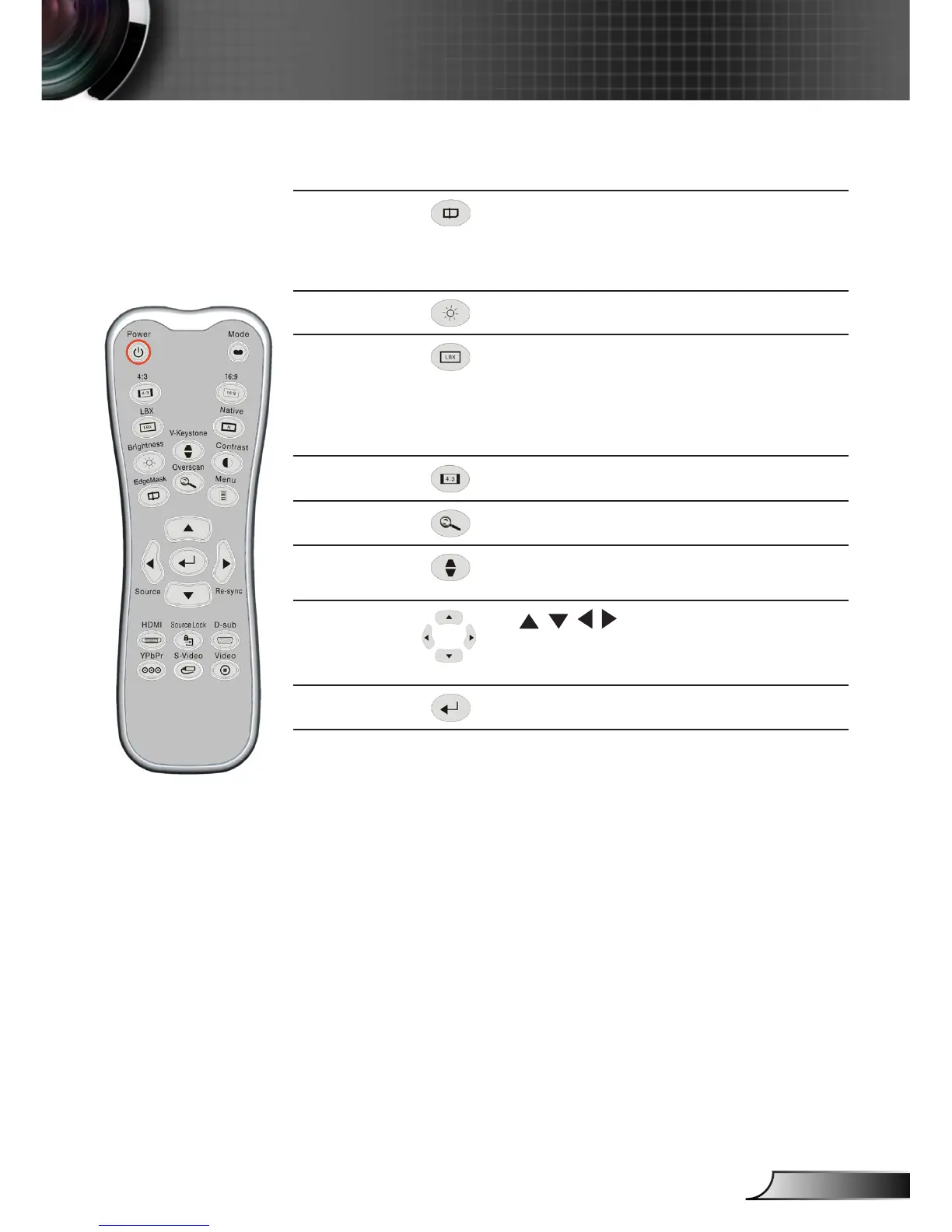 Zoom the projector display in or out.