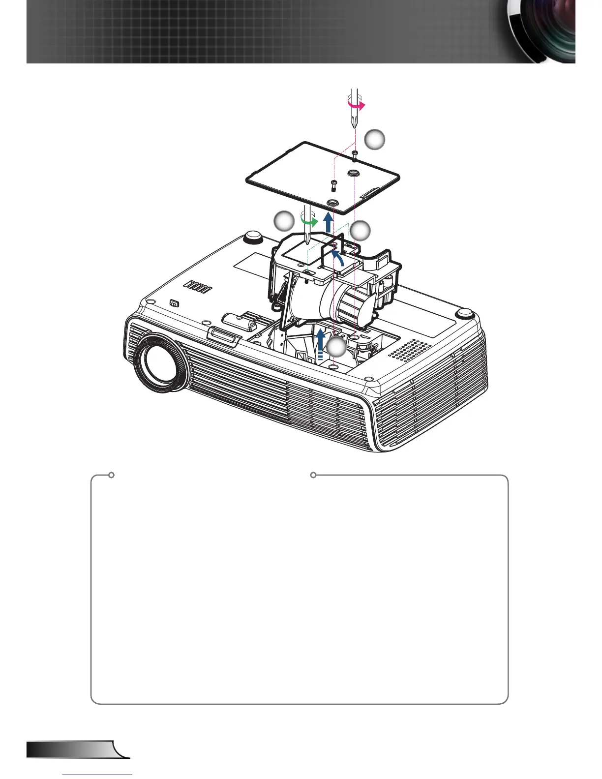 8. Turn on the projector and use “Lamp Reset” after the lamp module is