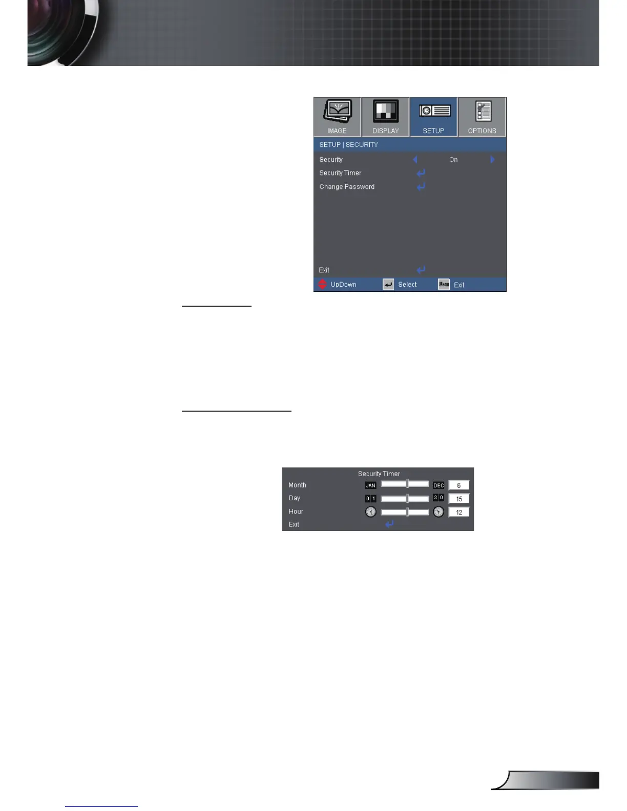 Optoma HD66 - Security Settings; Security Timer Configuration