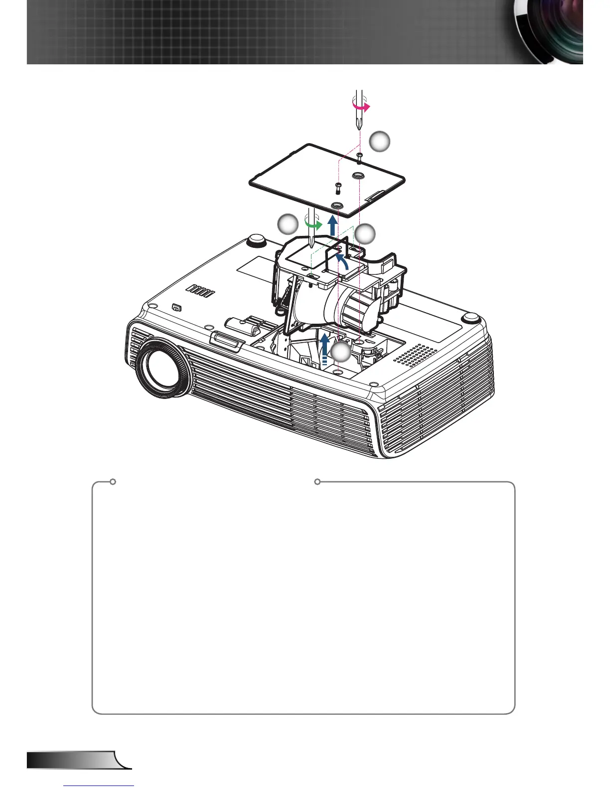 8. Turn on the projector and use “Lamp Reset” after the lamp module is