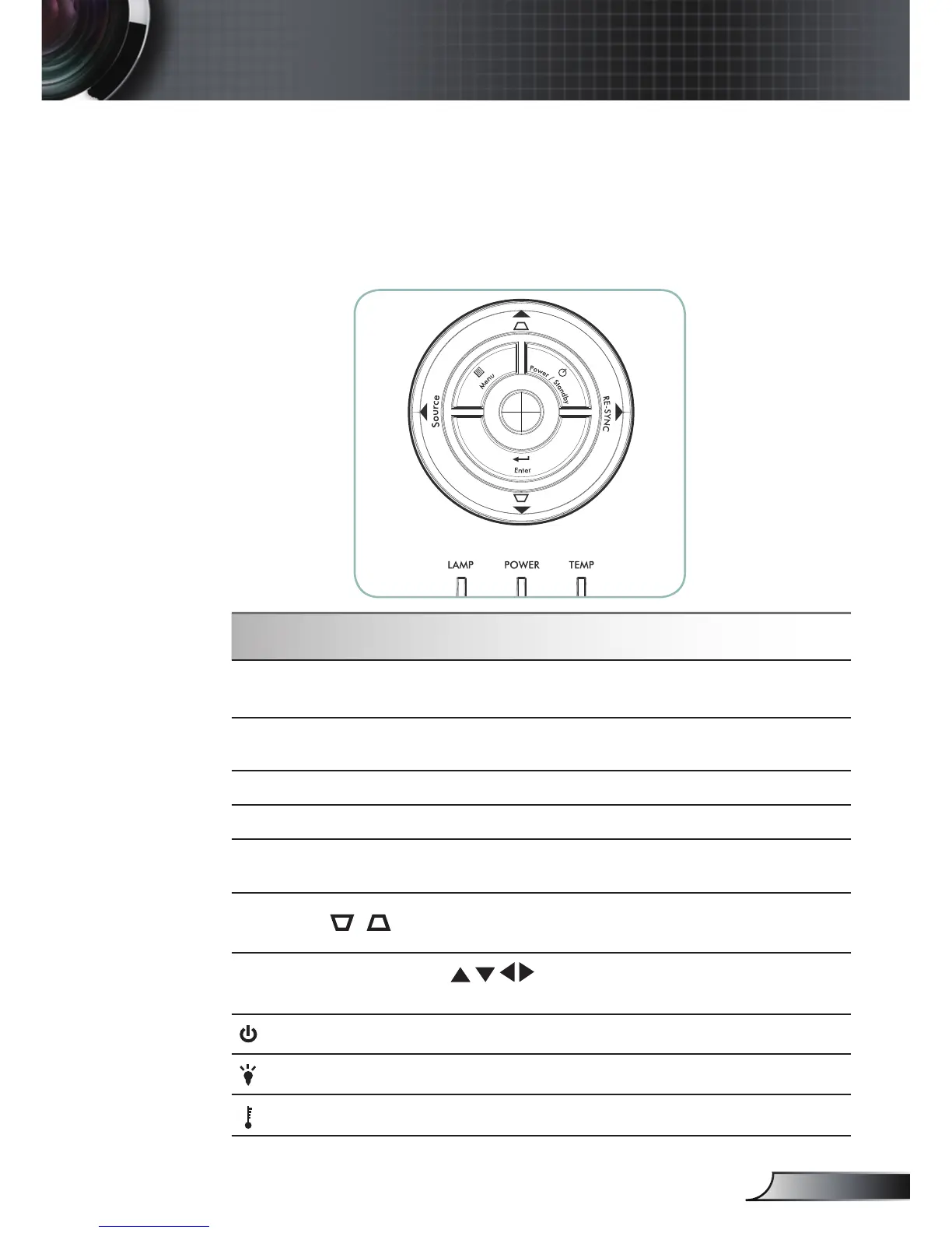 Indicate the projector’s status.