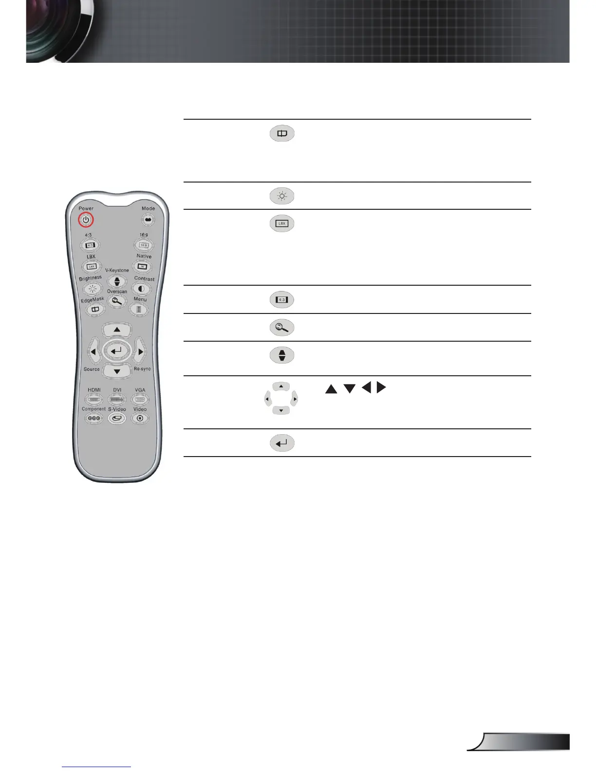 Zoom the projector display in or out.
