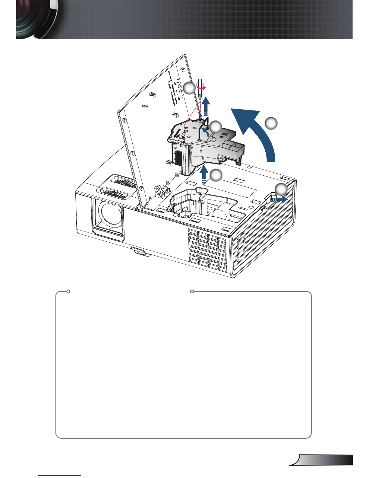 9. Turn on the projector and use “Lamp Reset” after the lamp module is