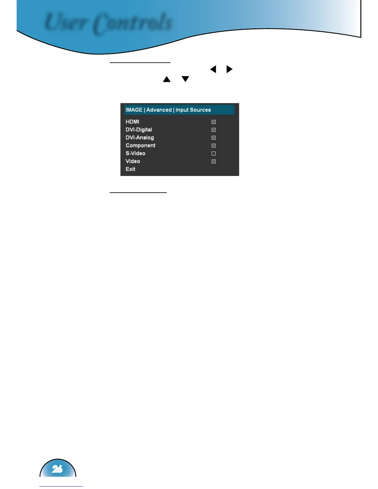 the selection. The projector will not search inputs that are de-