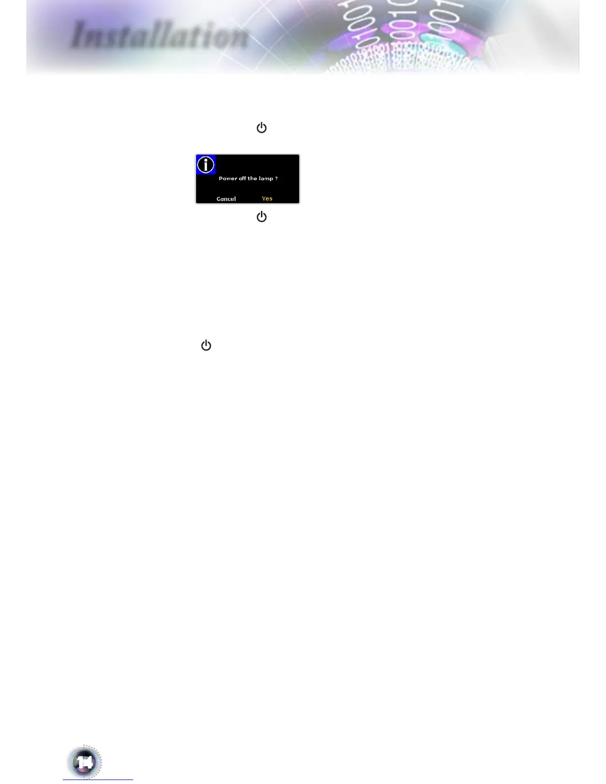 1. Press the “ ” button to turn off the projector lamp, you will