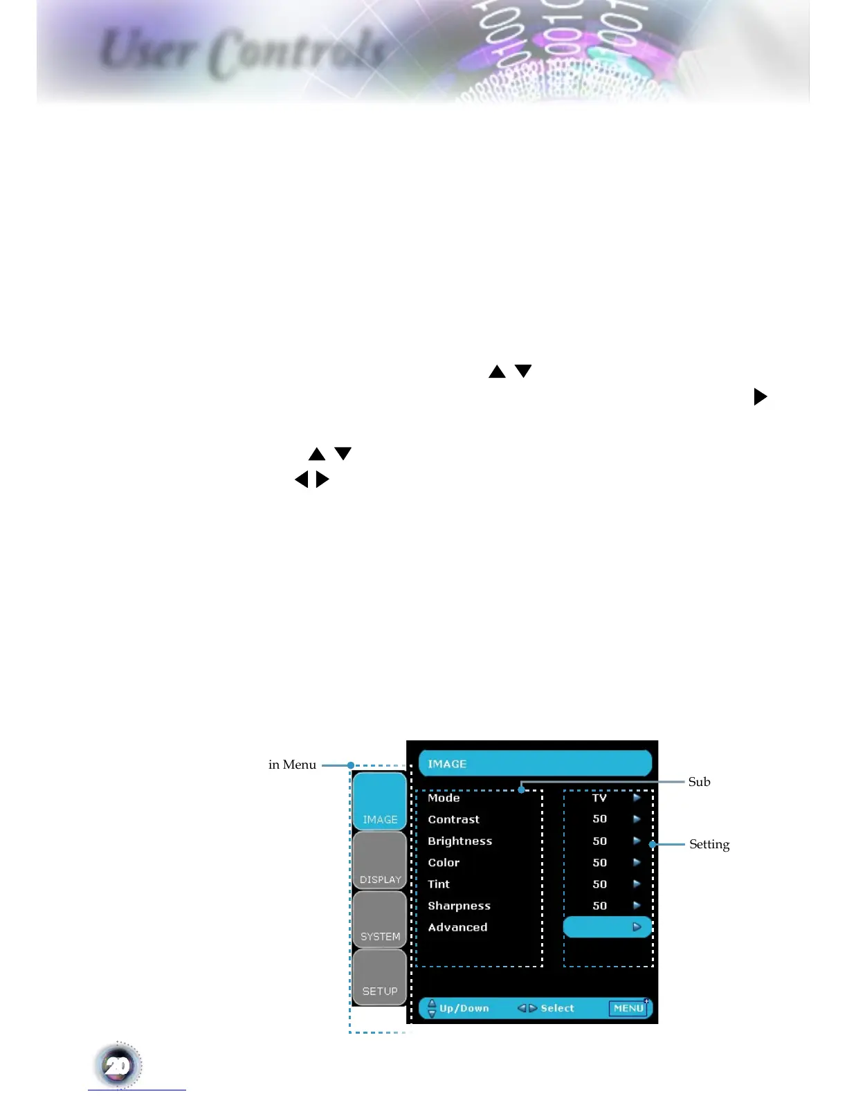 or “Enter” key to enter sub menu.