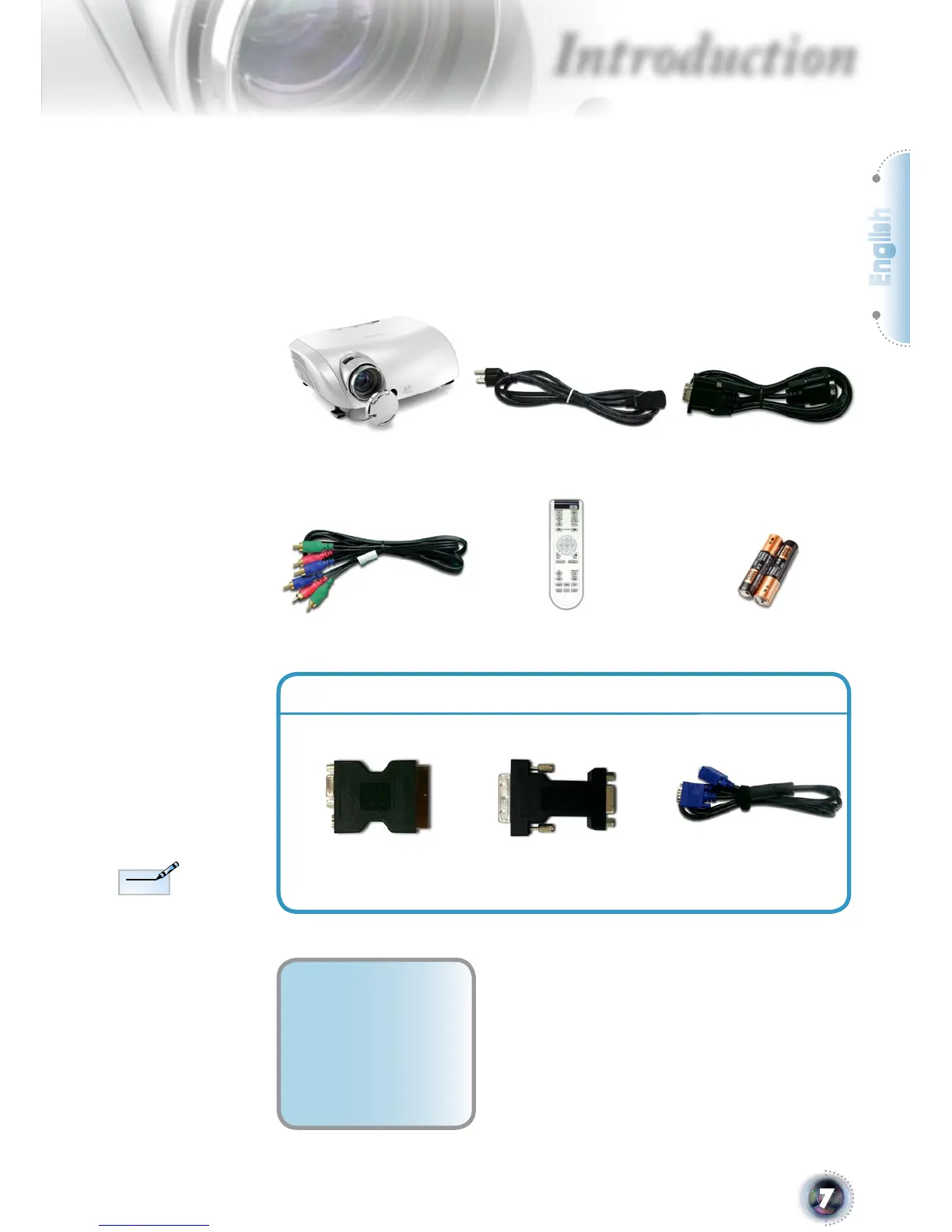 This projector comes with all the items shown below.