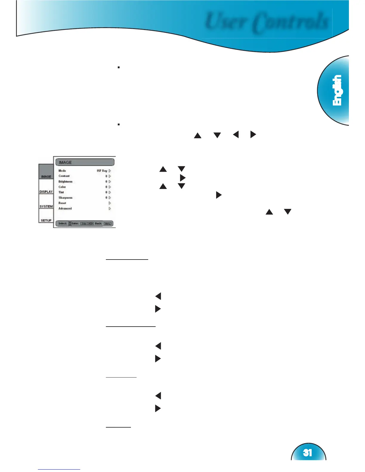3) Use “ ”, “ ” arrow keys to select the desired adjustment