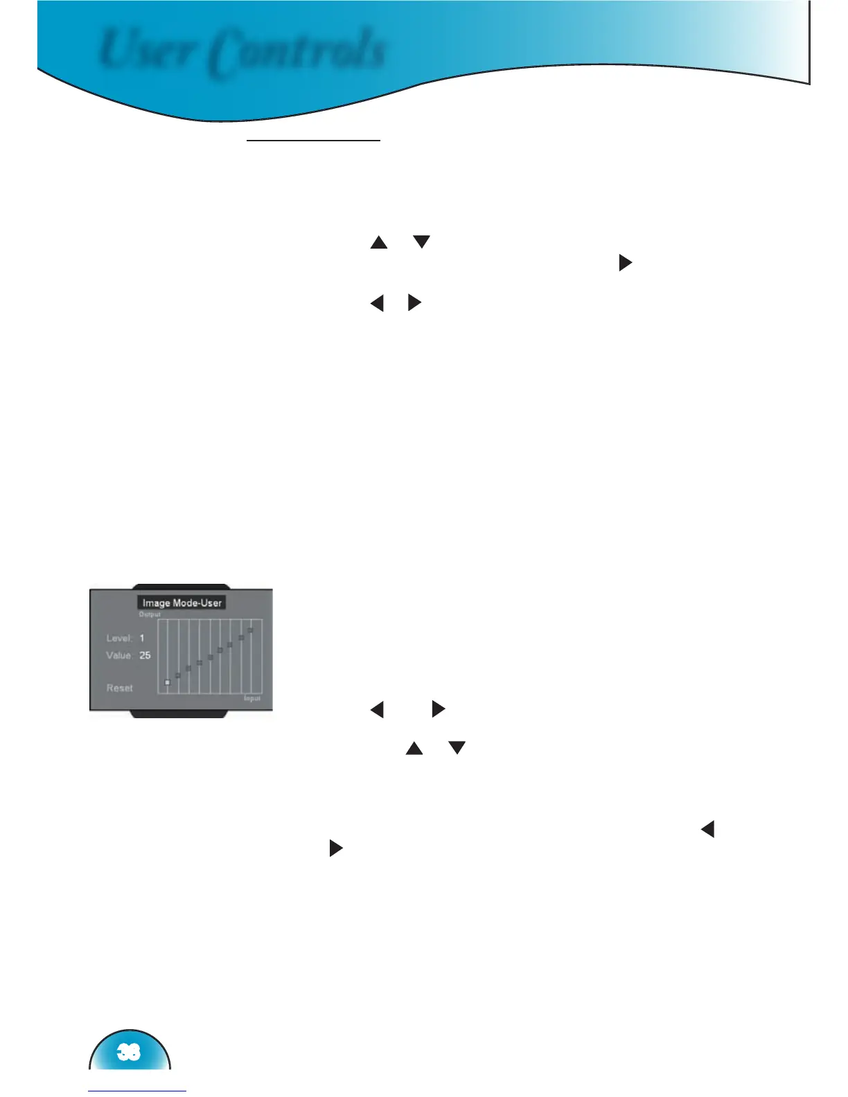 6) If user wants to set gamma curve as “linear”, use “ ”or “