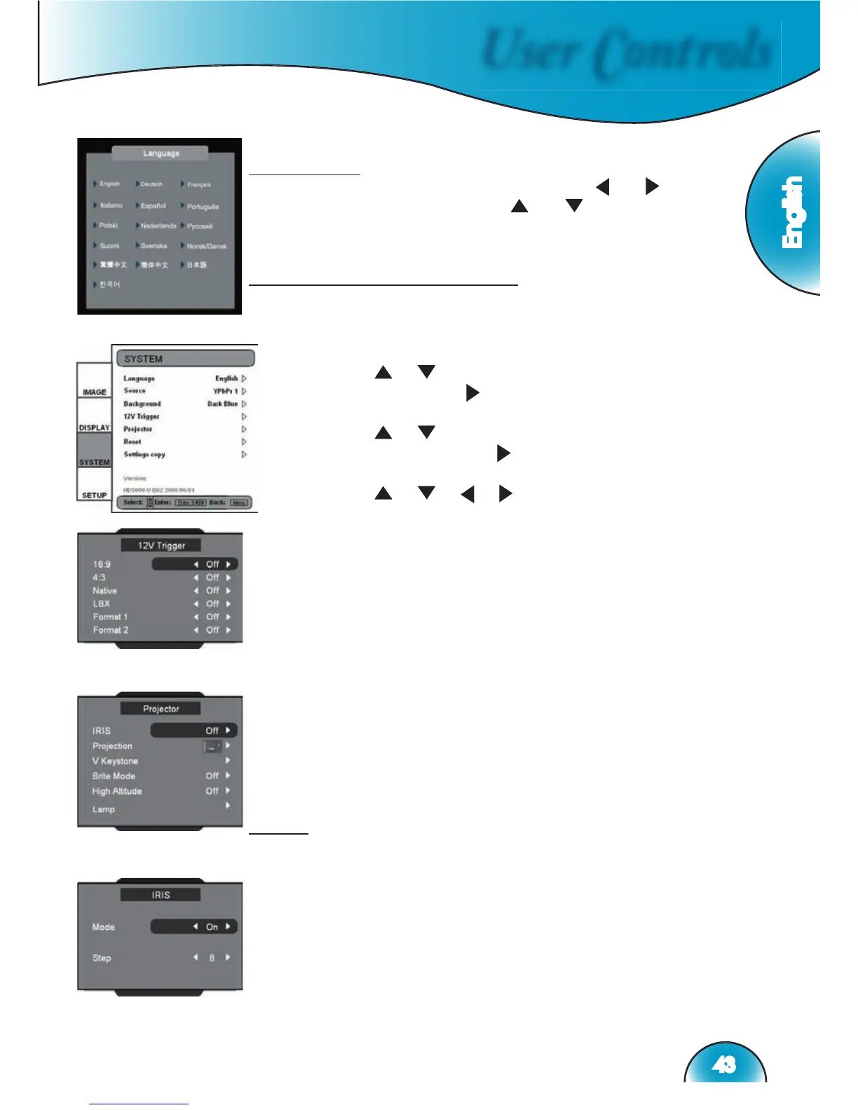 “ ”, “ ” arrow keys to select the “12V Trigger” item,