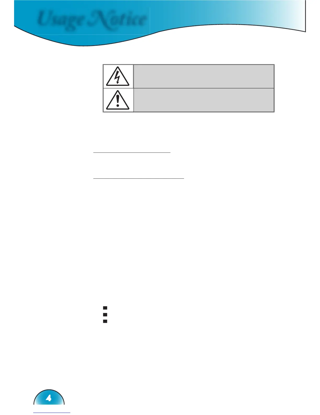 8. Do not let objects or liquids enter the projector –as they may touch