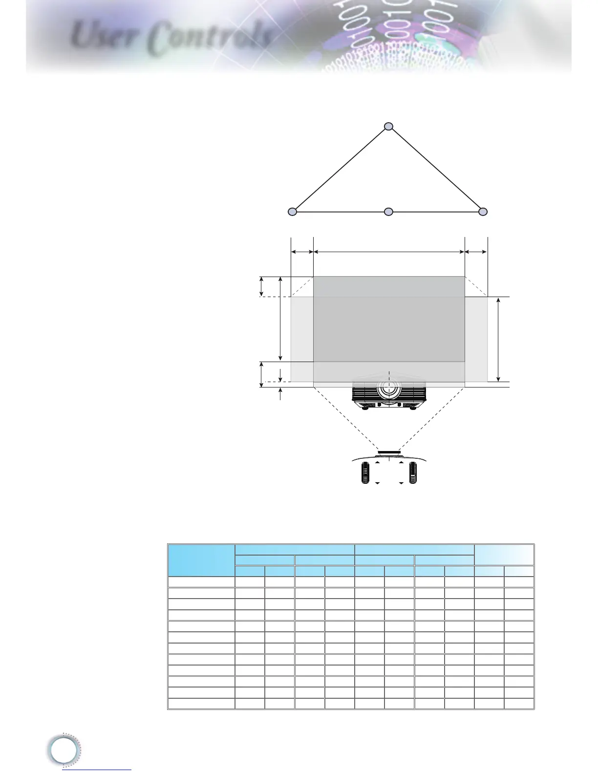 Screen Size W X H (16:9) Projection distance (D)