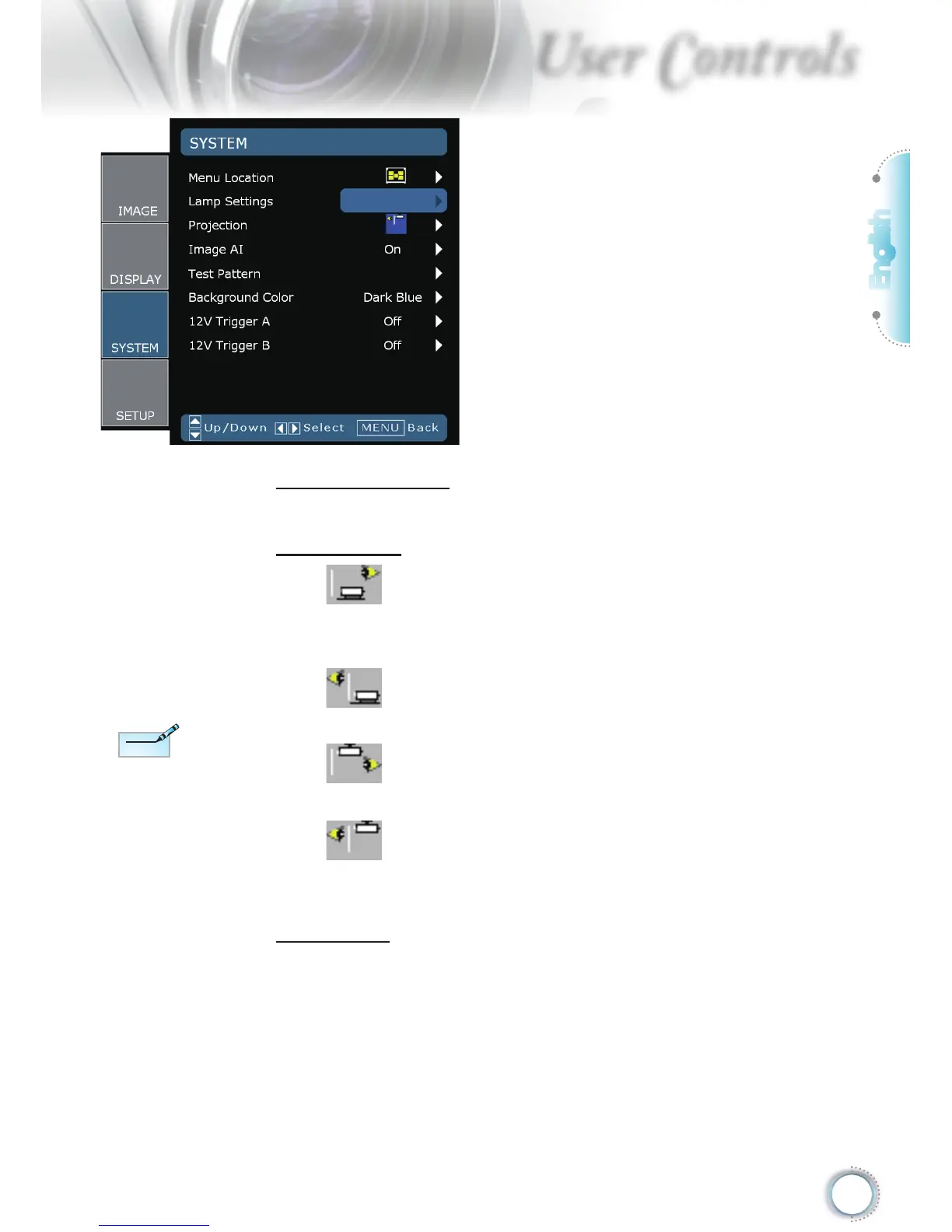 Choose the menu location on the display screen.