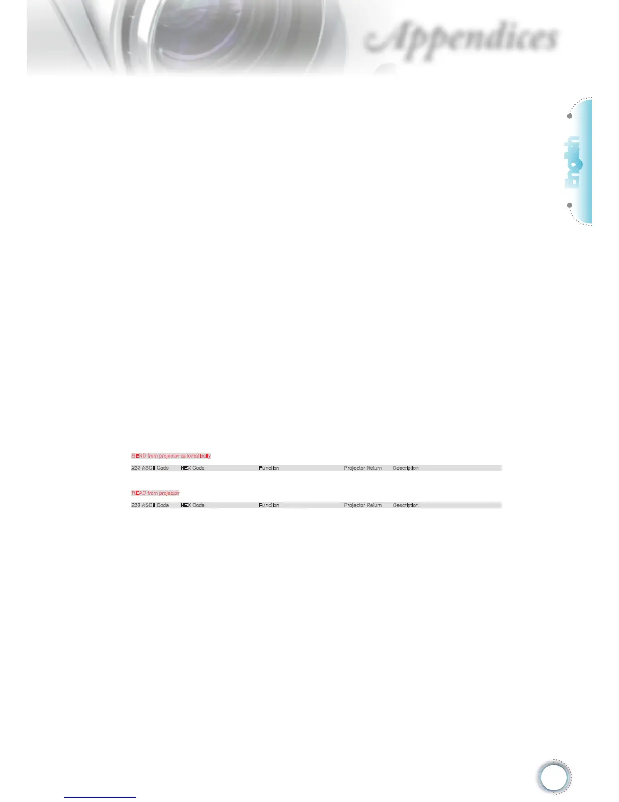 232 ASCII Code HEX Code Function Projector Return Description
