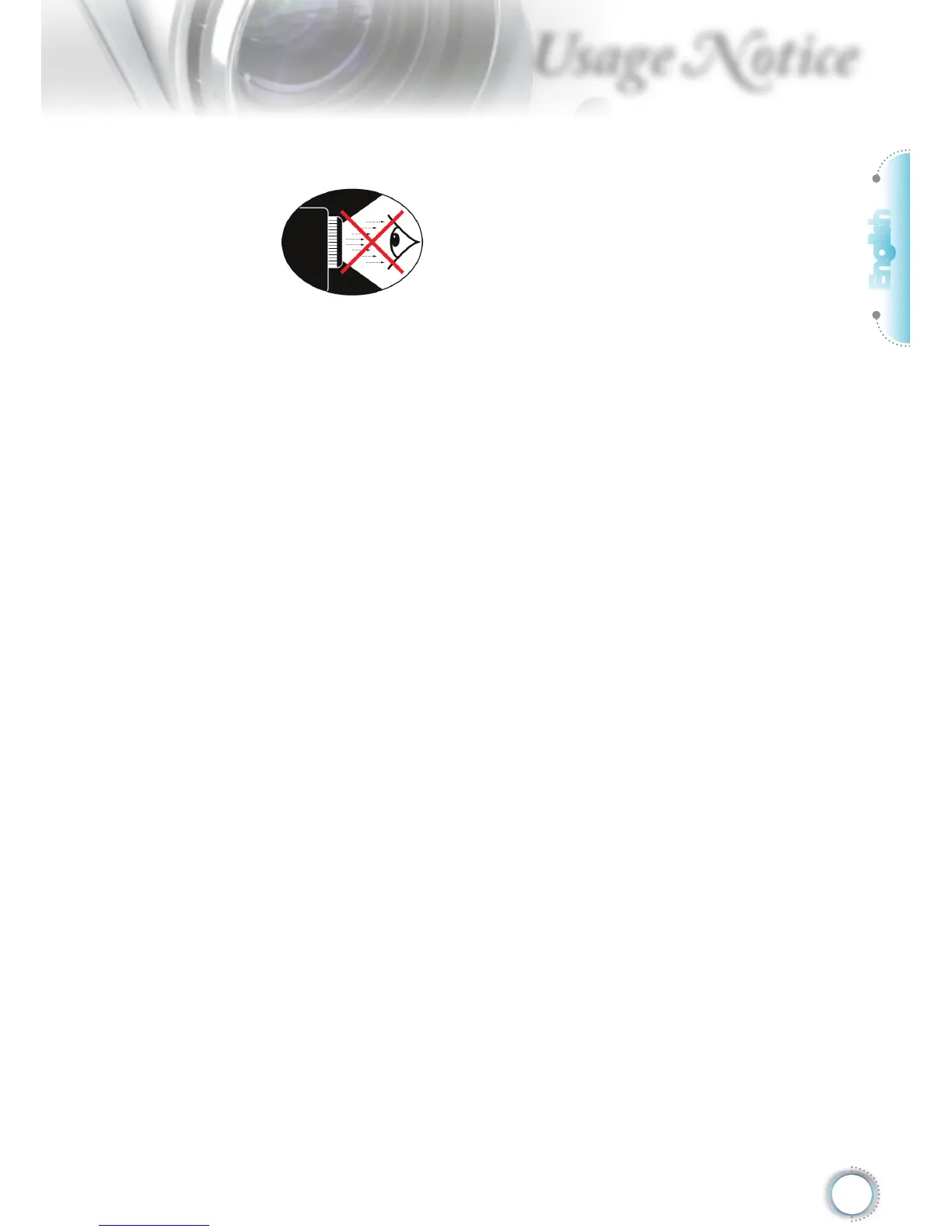 ▀■ Avoid staring/facing directly into the projector beam at all