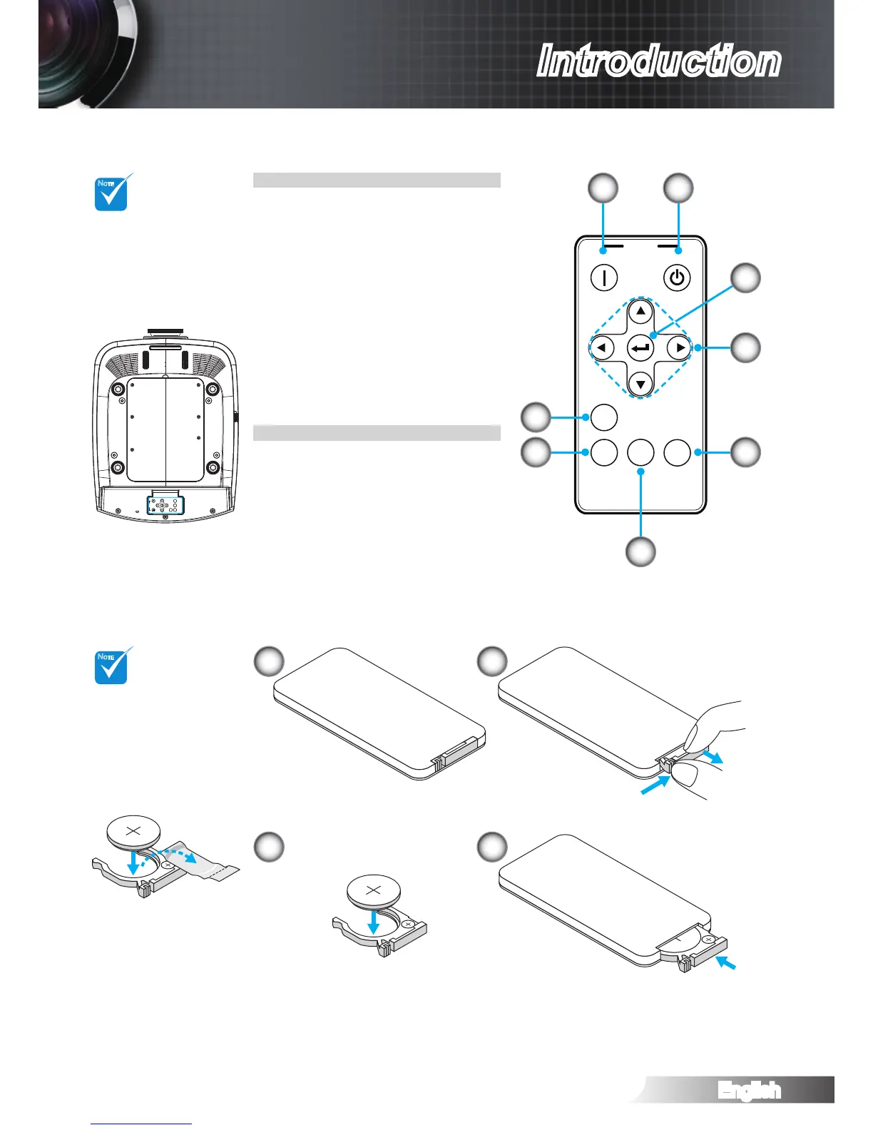 Optoma HD83 - Backup Remote Control; Coin Cell Battery Replacement; Power off; Power on