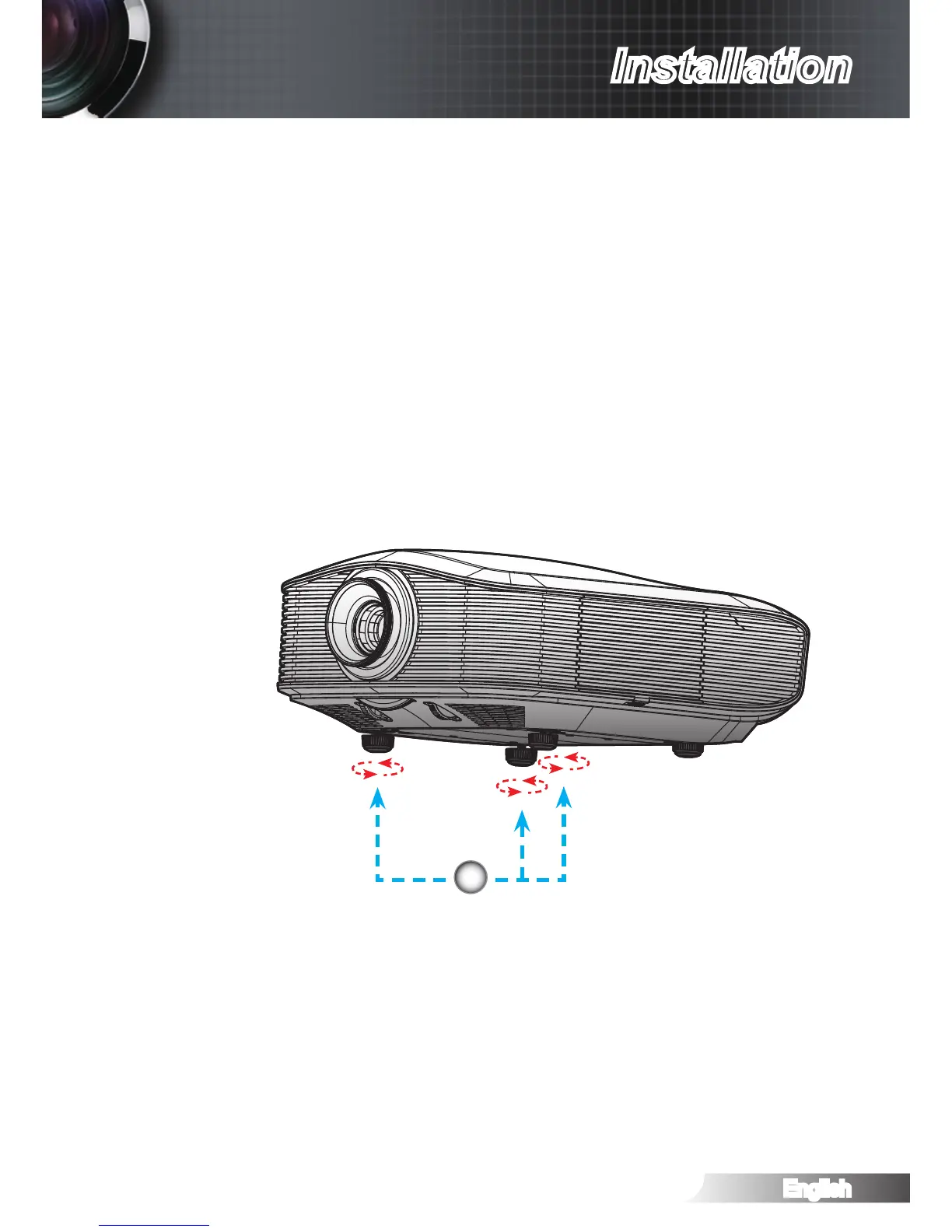 Use screw in foot to raise the image to the desired height angle