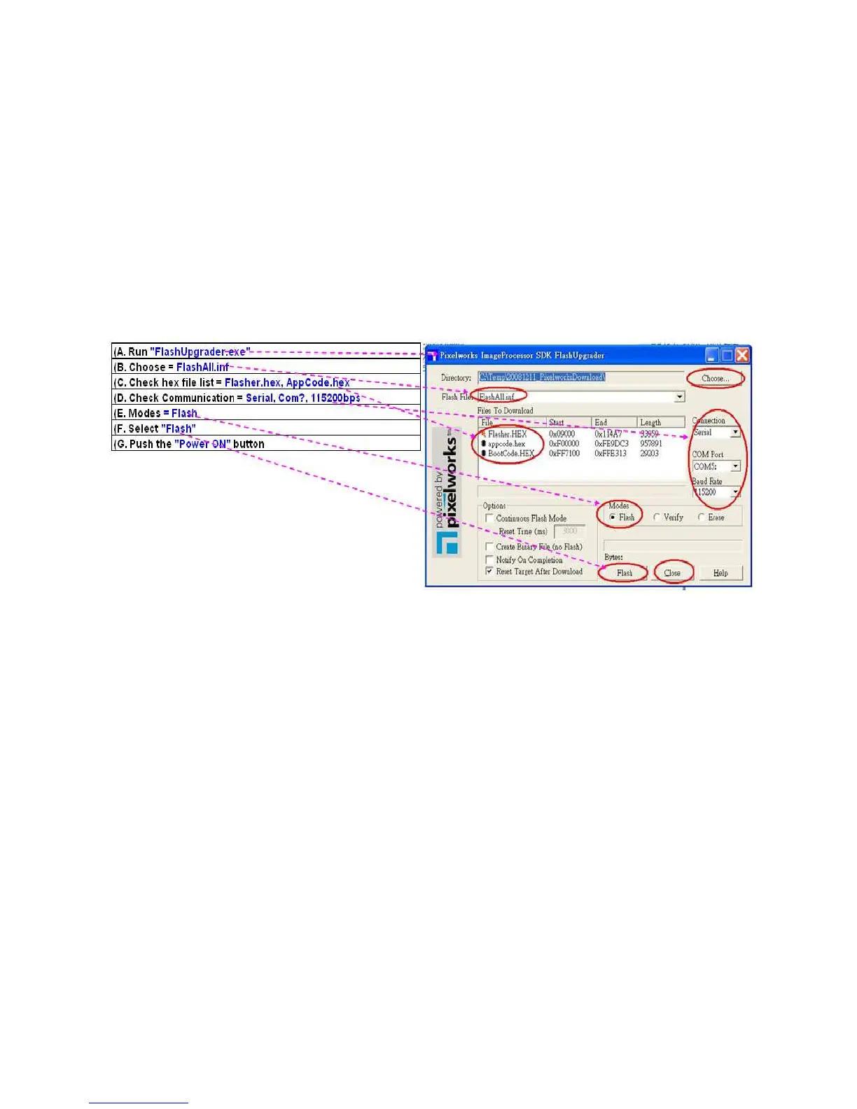 While executed, a “FlashUpgrader” window shall appear as the following picture.