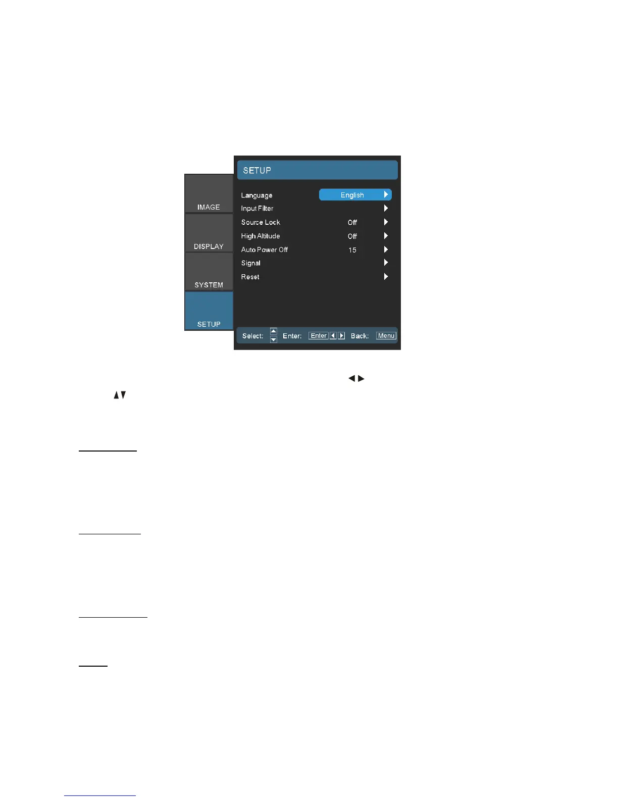 SETUP / Source Lock - High Altitude - Auto Power Off
