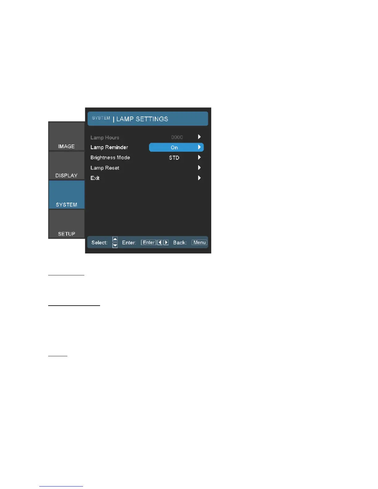 then press “SYSTEM” item into “SYSTEM – LAMP SETTINGS” page.