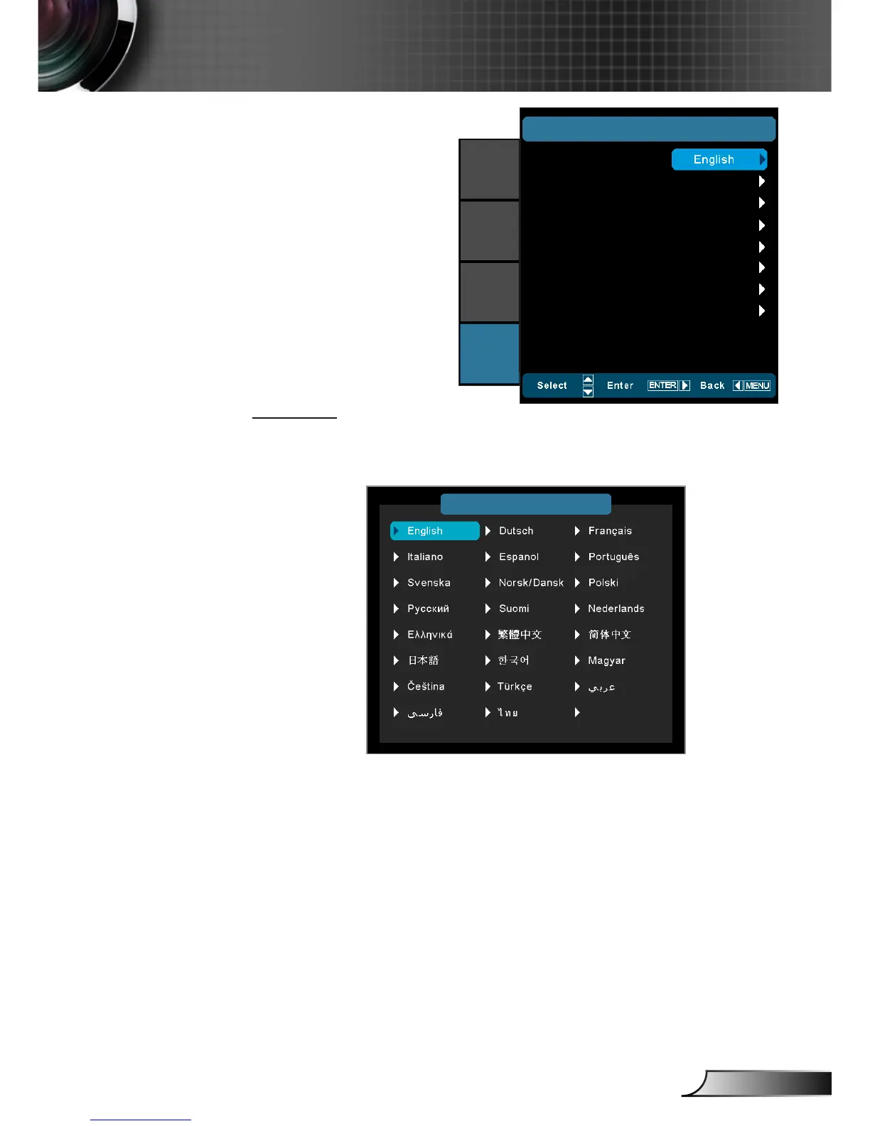 Choose the multilingual OSD menu. Press ► into the sub menu