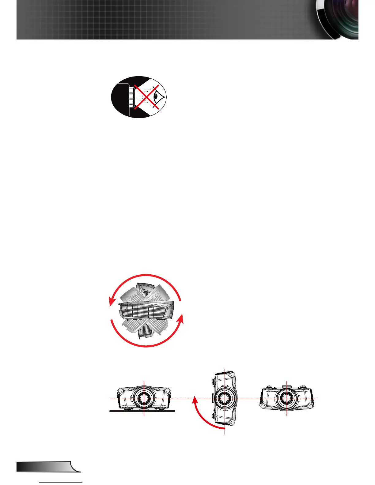 ▀■ Avoid staring/facing directly into the projector beam at all