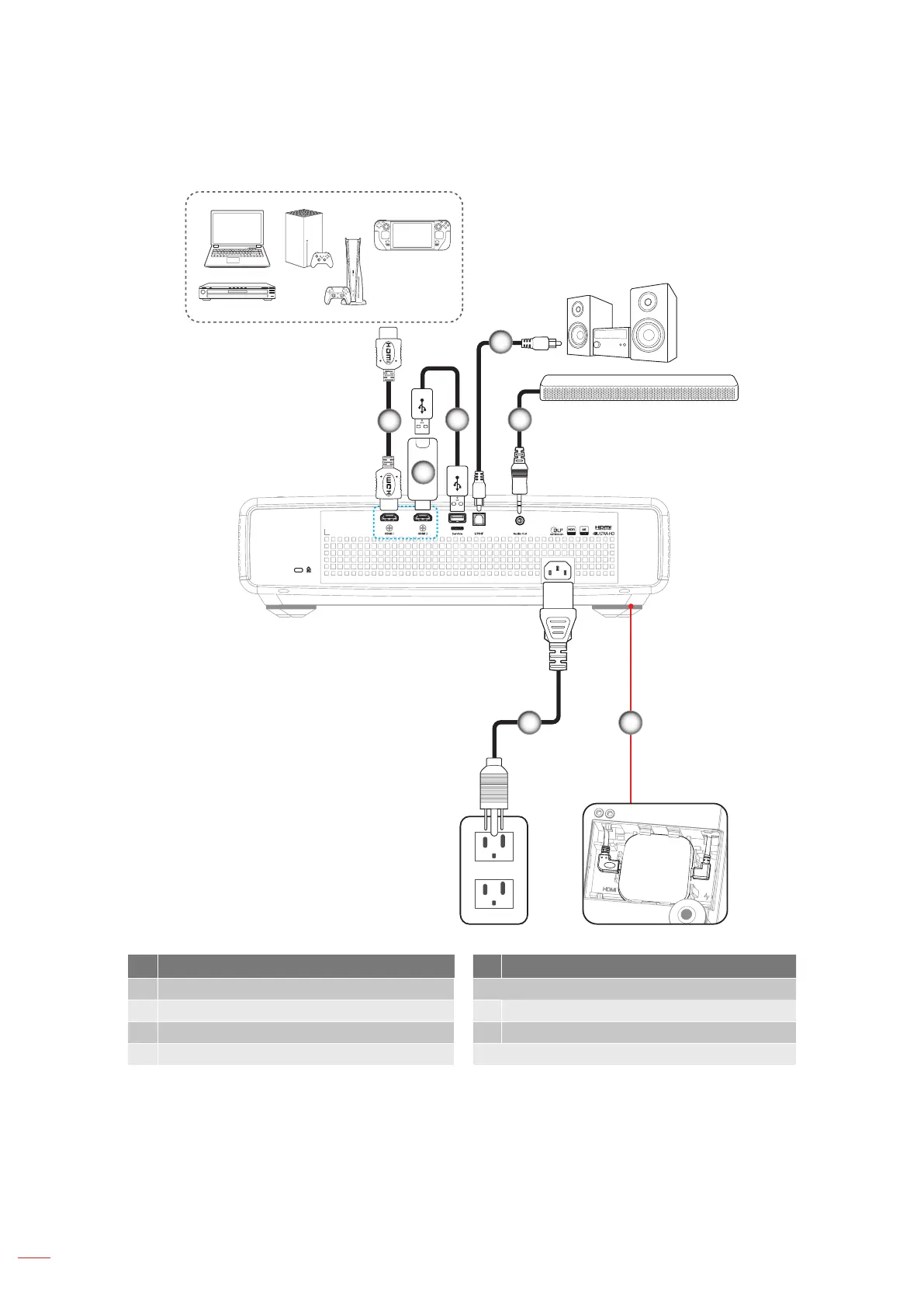 1. HDMI Cable 5. Audio Out Cable