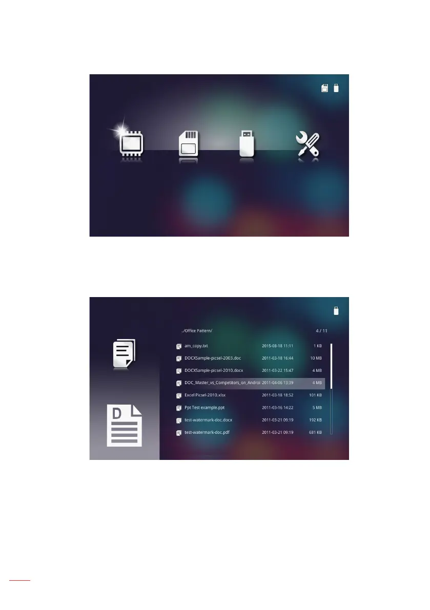 4. Access the USB menu and select the multimedia files: Photo, Video, or Music. Or