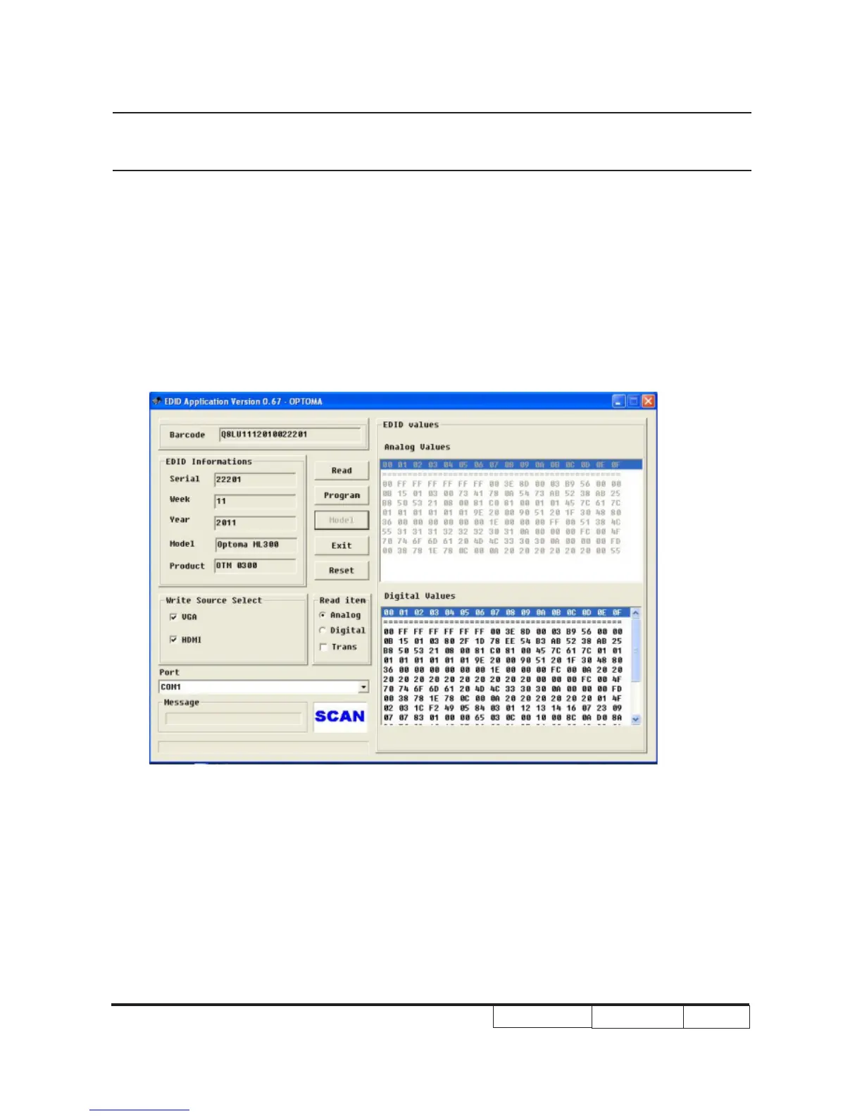 - Please use “ EDID 0.67exe” Program and Key in the serial number into the “Unit No”