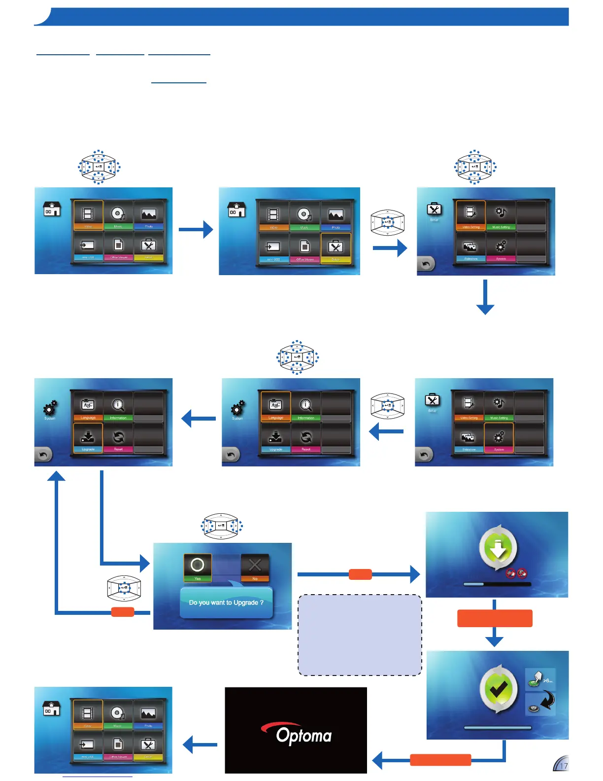 2. Downloadthelatestrmwarefromwww.optoma.com and save it in the "upgrade" folder.