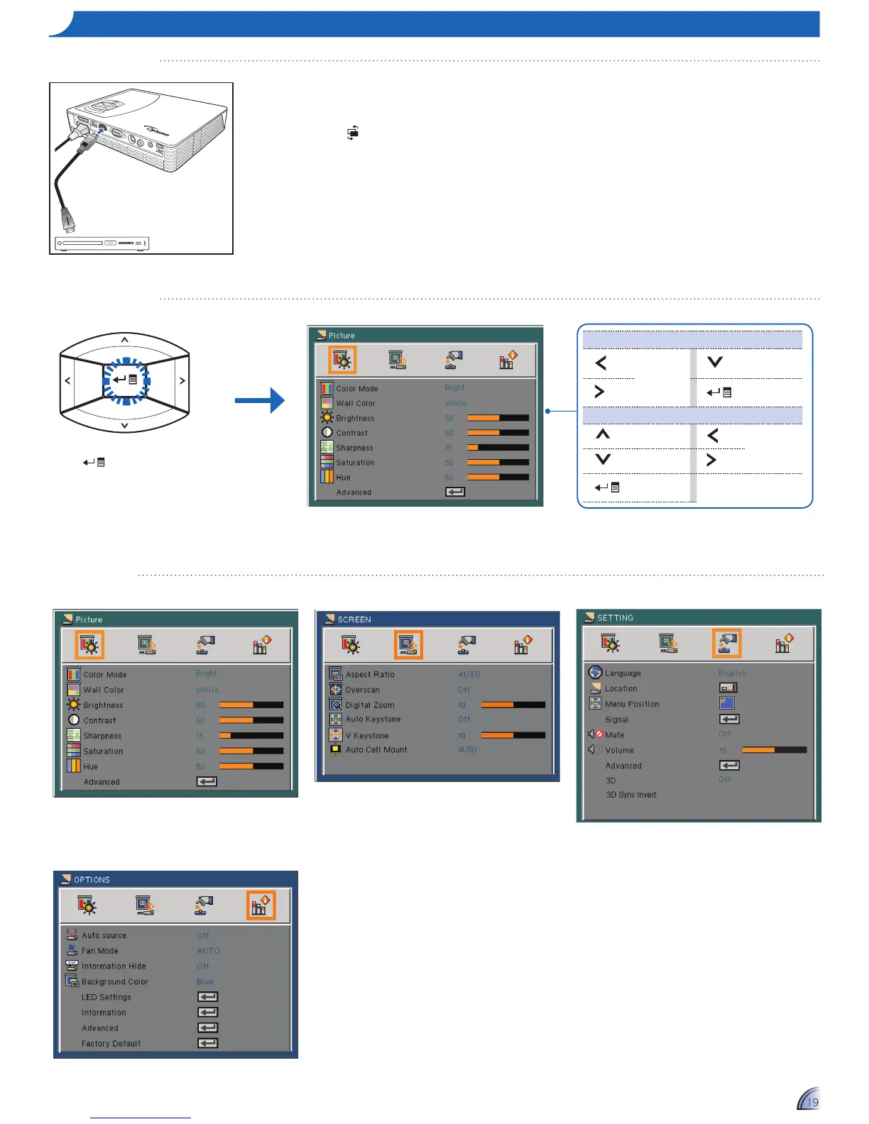 aD j u S t me n u Se t t I n g S f o r ex t e r n a l In p u t So u r c e : vga / co m p o S I t e av / hDmI