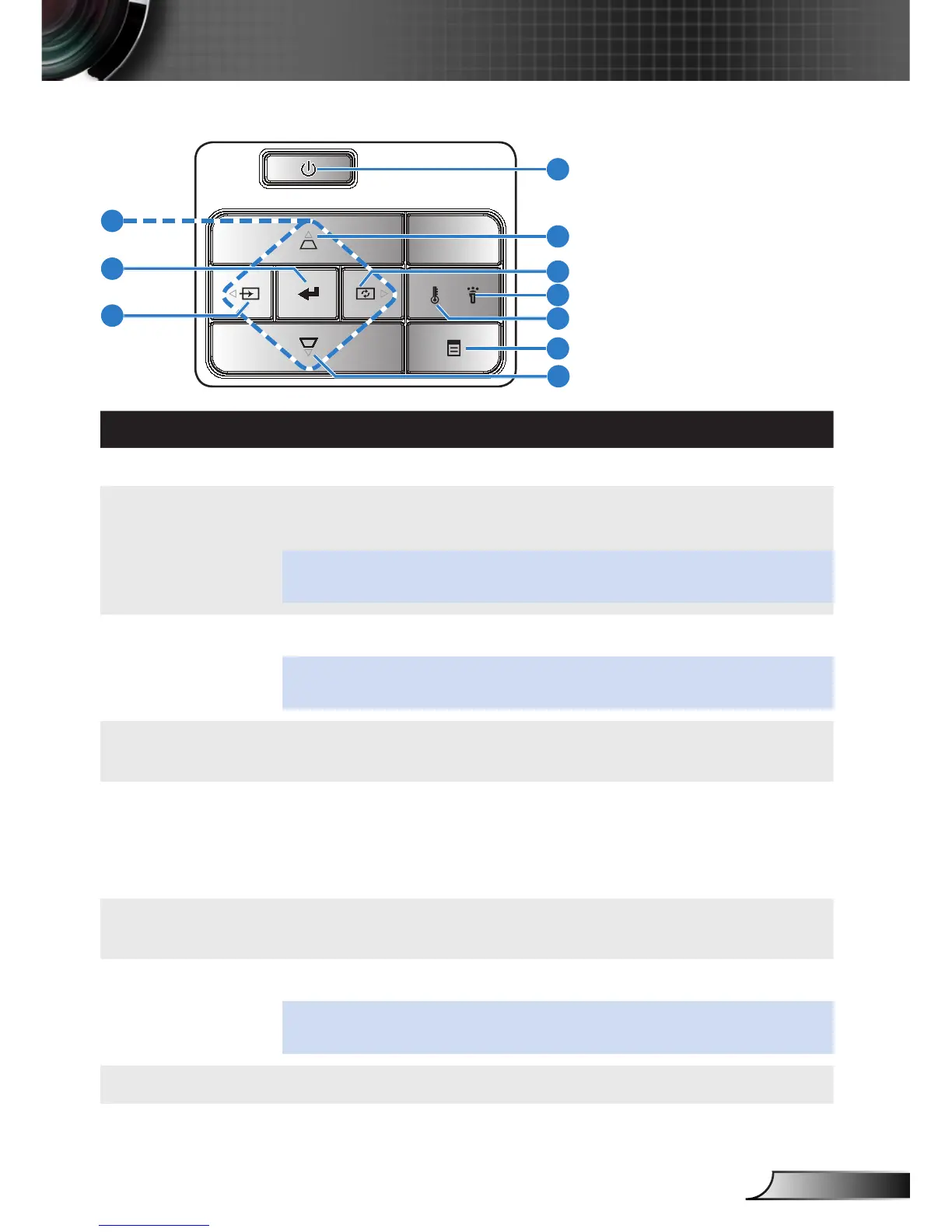 4 Error LED Error LED is solid amber, one of the LED has failed. The projector