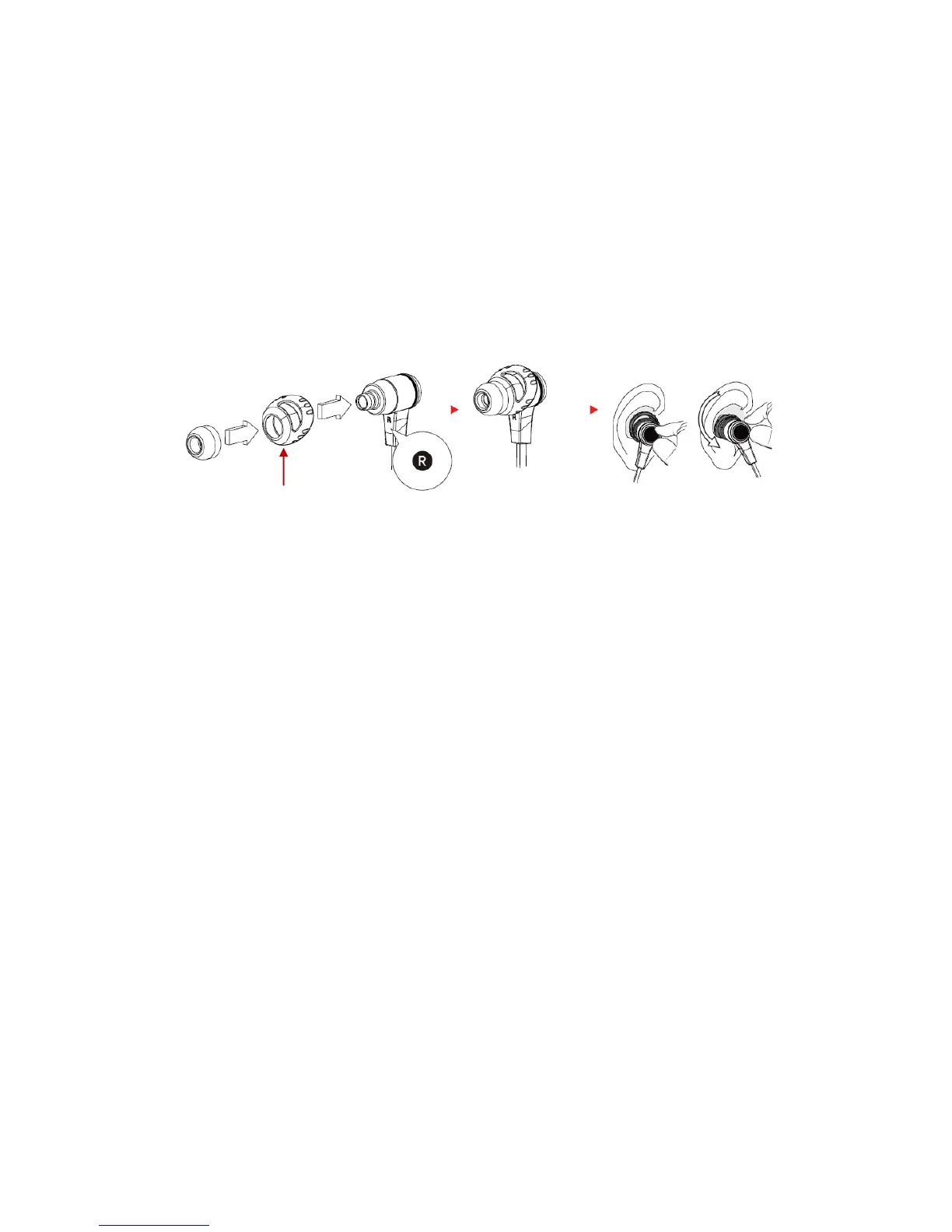 3. Rotate the stabilizers and place the BE6 into each ear so that