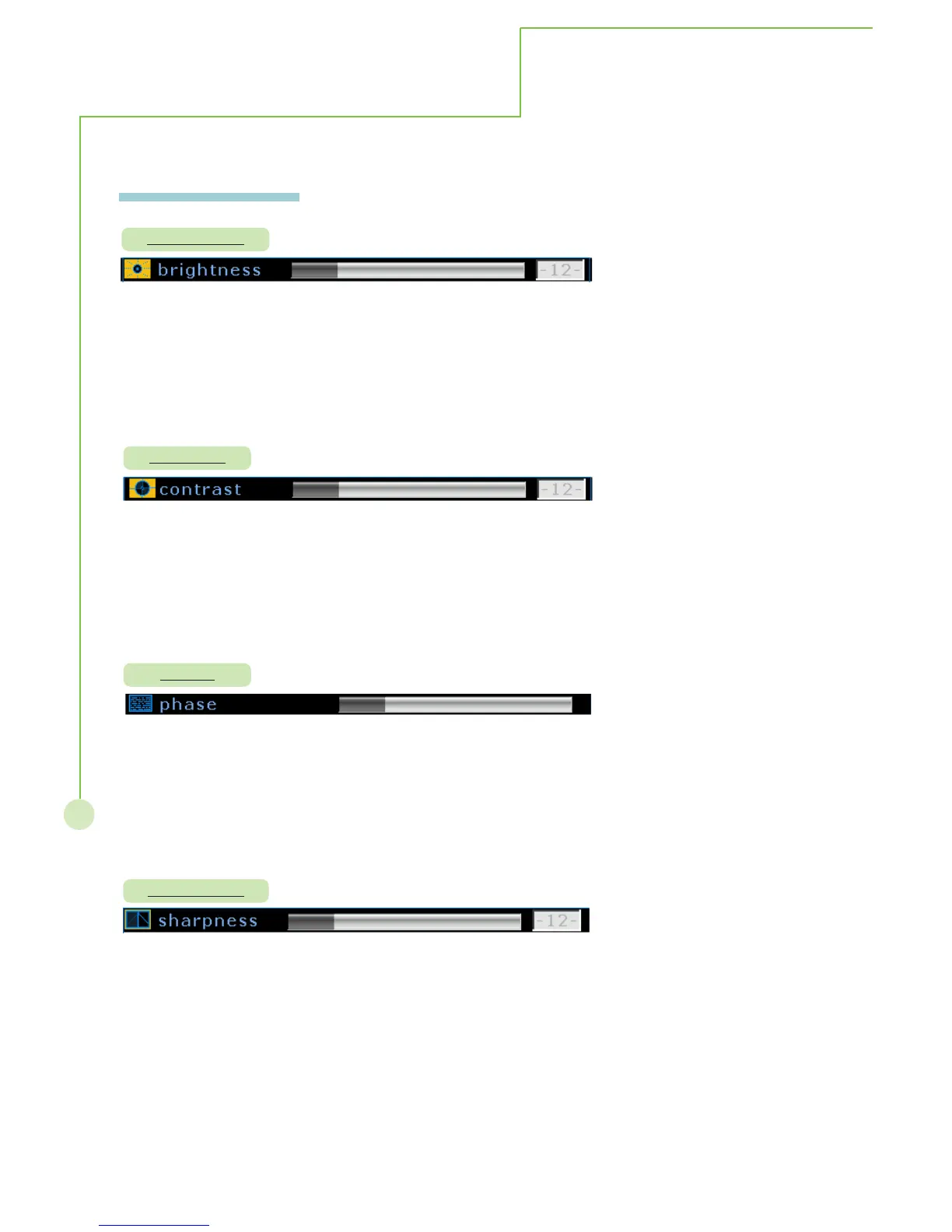 adjust sharpness range from 0 to 12. Re-pressing MENU/EXIT to exit