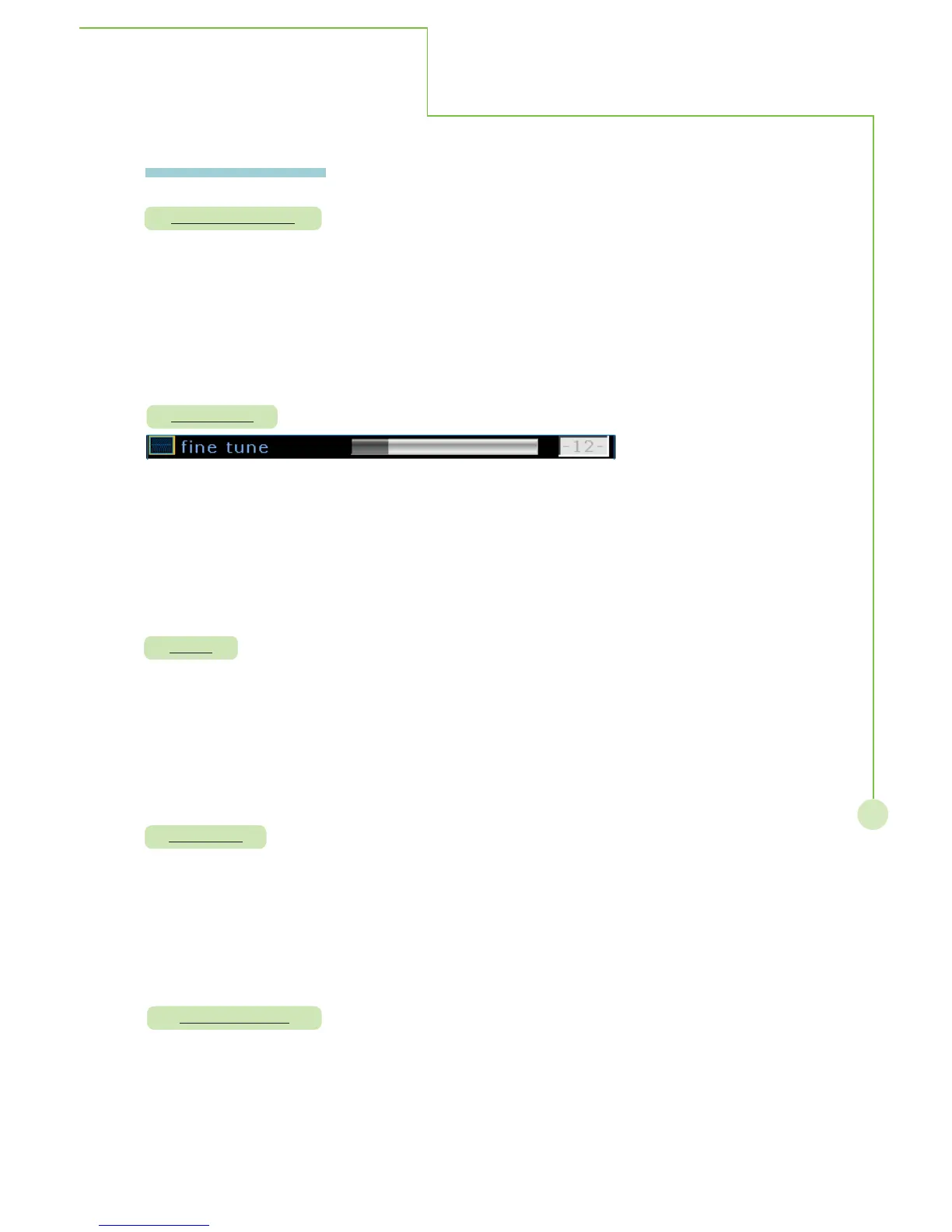 Steps: Selecting fine tune item then press OK to activate function. The bar appears