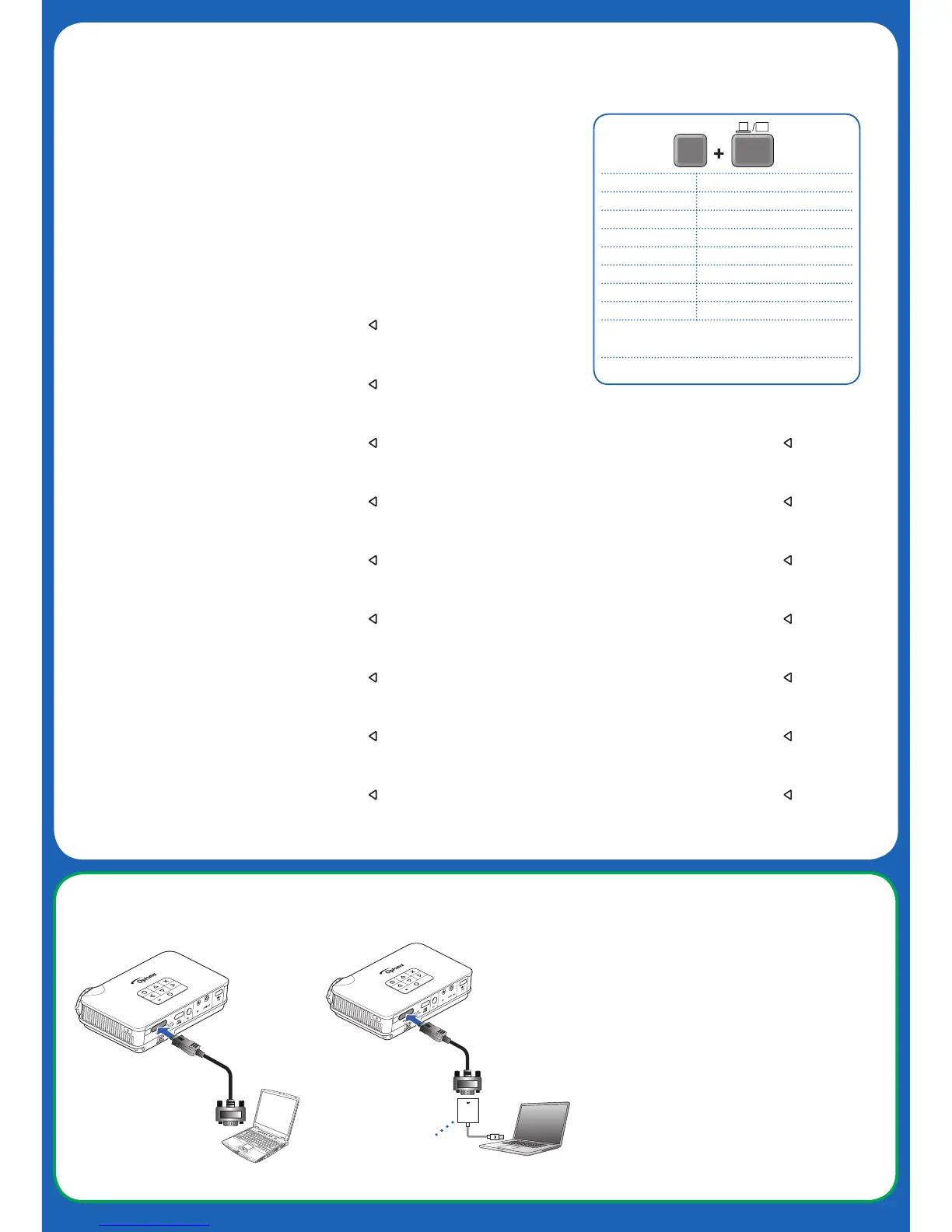 Note: If nothing appears on screen, see table.