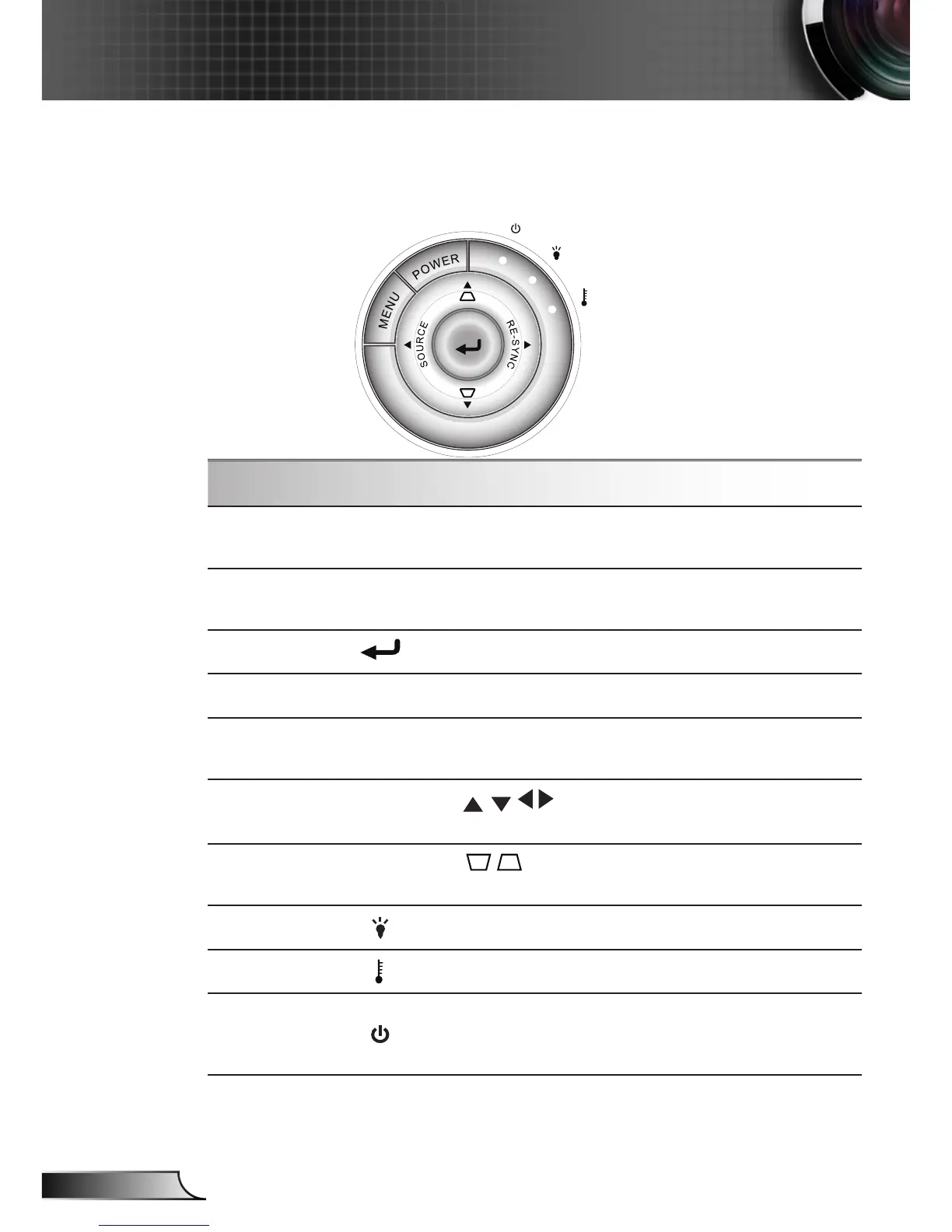 Temp LED Indicate the projector’s temperature status.