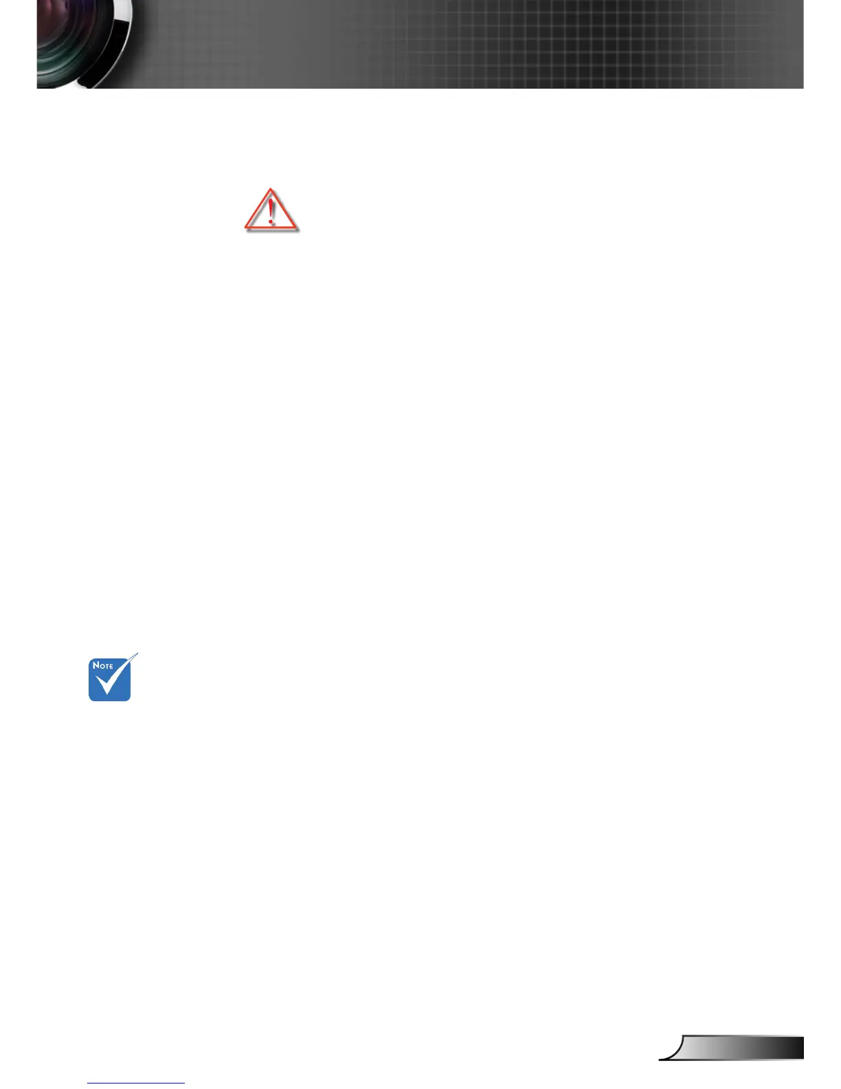 ▀■ Warning- Do not use lens cap when projector is in operation.