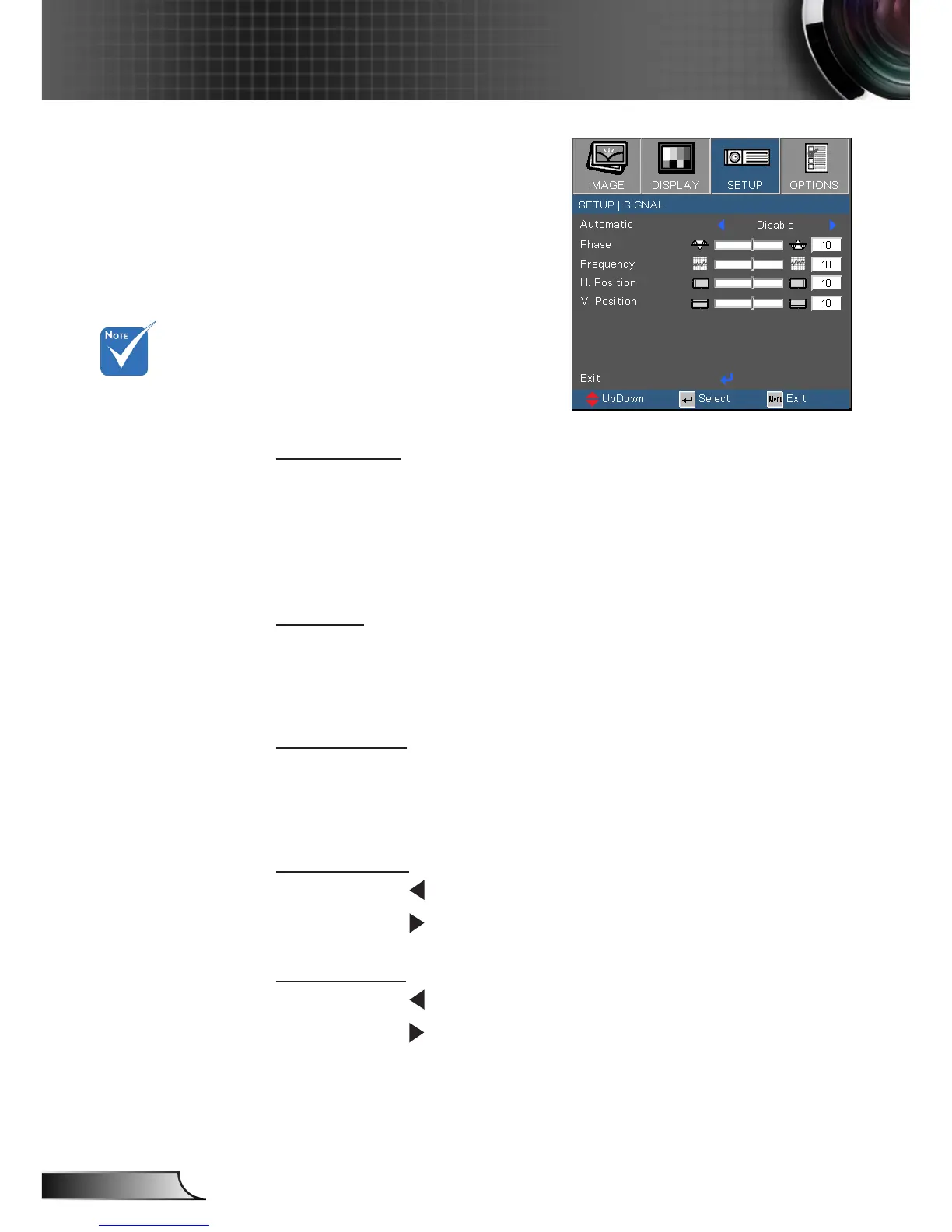 Phase, frequency items are grayed out, and if Signal is not auto-