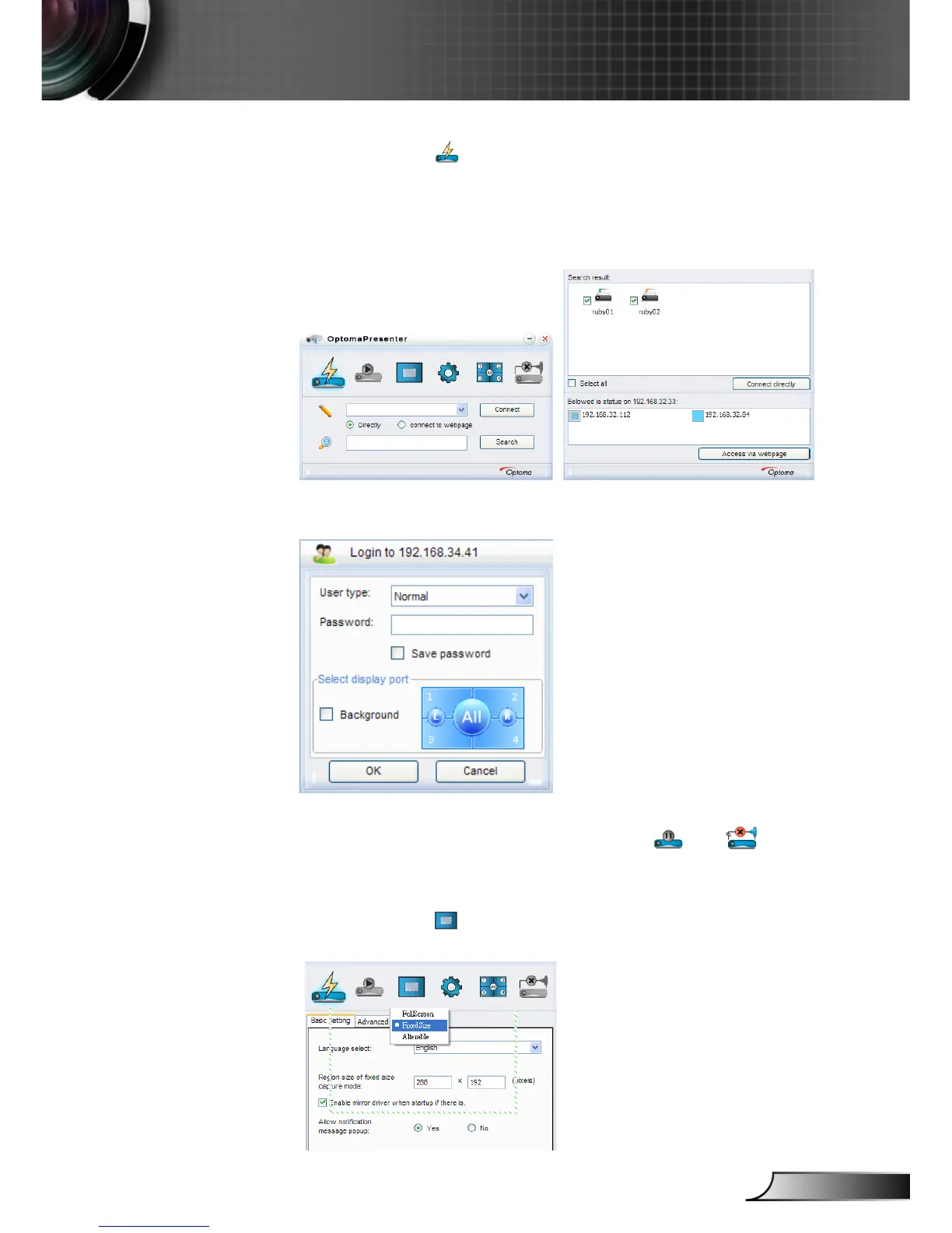 3. After log-in, Optoma Presenter will modify PC resolution to Ruby