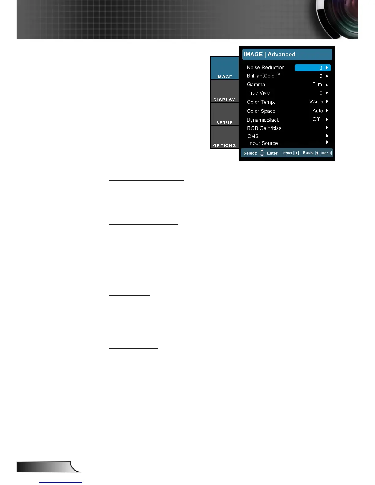 This allows you to set up gamma curve type. After the initial setup