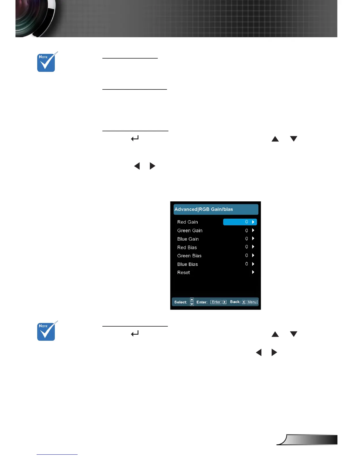 Red Gain/Green Gain/Blue Gain/Red Bias/Green Bias/Blue Bias: