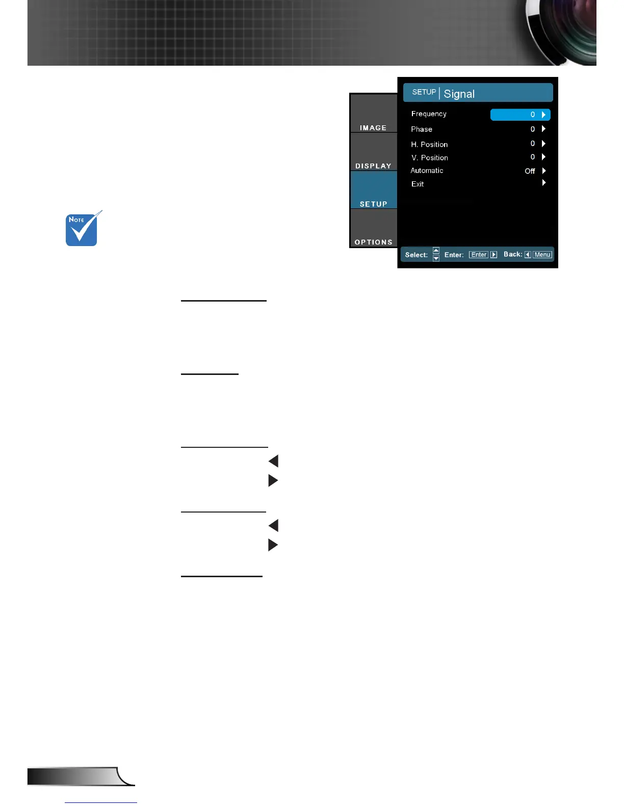 Phase, frequency items are grayed out, and if Signal is not auto-