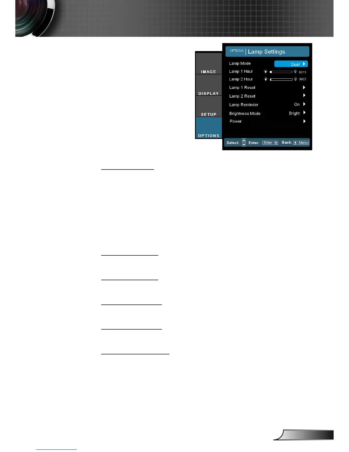 Select single/dual lamp mode of the projector.