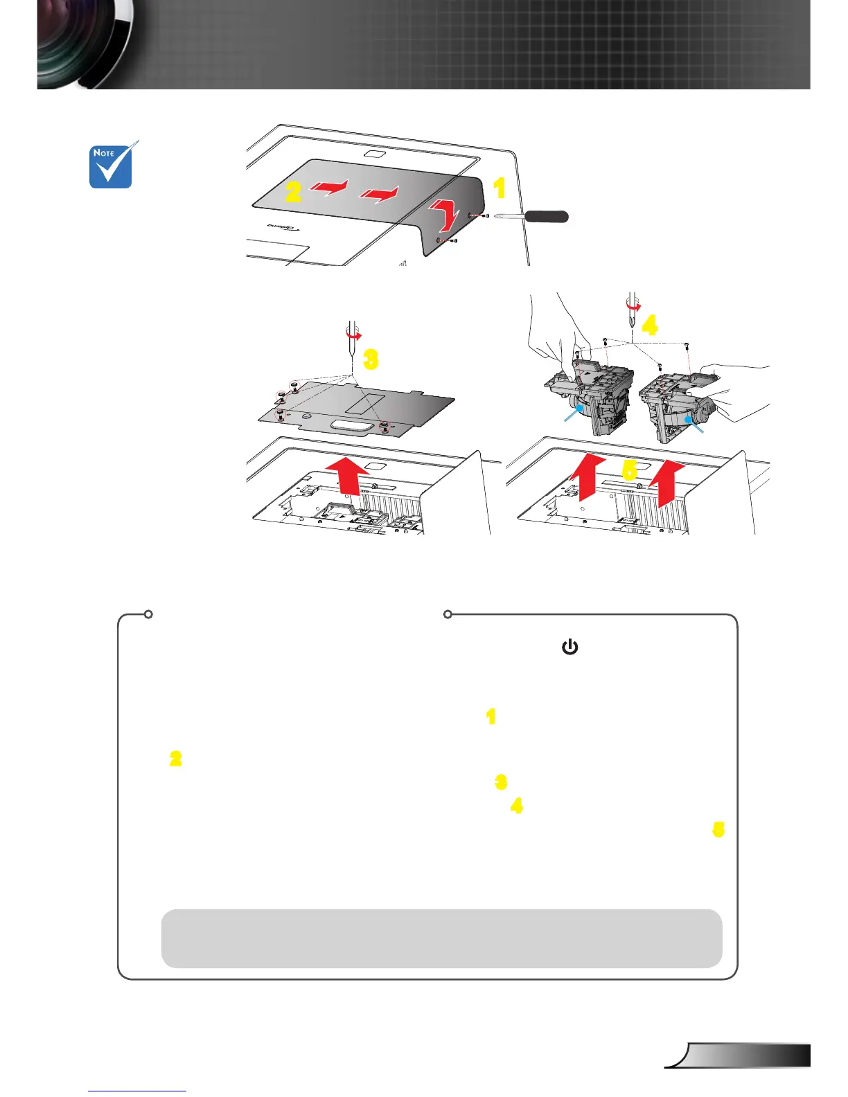9. Turn on the projector and use “Lamp Reset” after the lamp module is