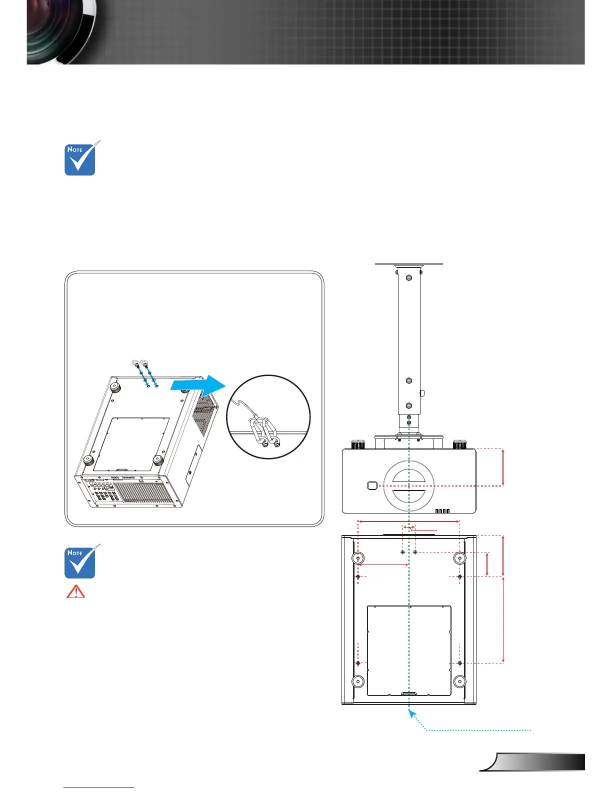 2. If you wish to use a third party ceiling mount kit, please ensure