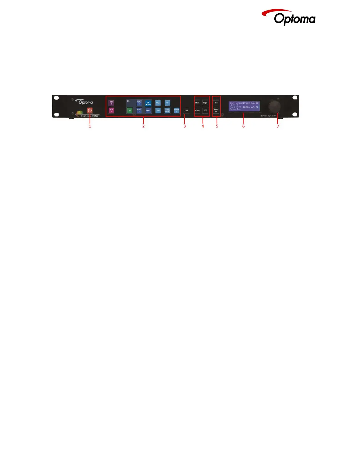 6 - Front Panel LCD: Displays the menus on a 4-line display